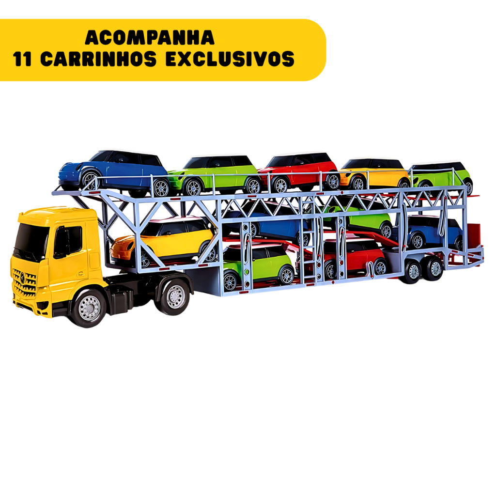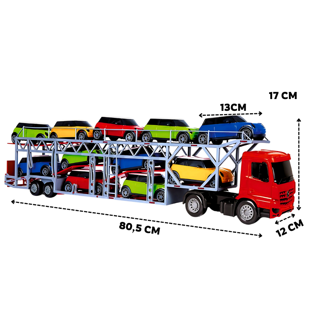 Brinquedo Cegonha Com 11 Carrinhos Caminhão Infantil Grande 80cm
