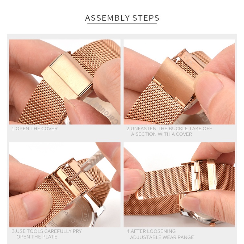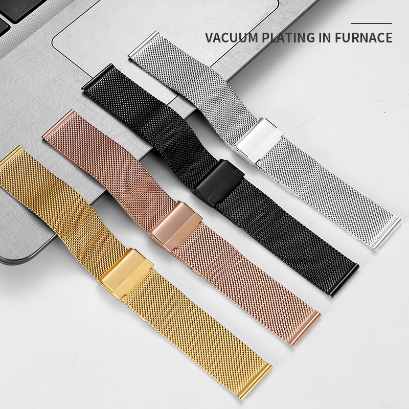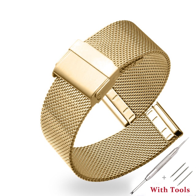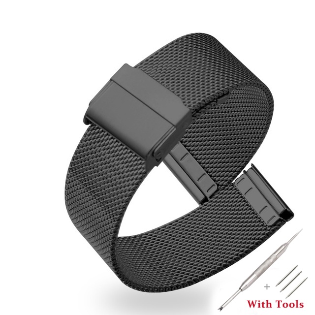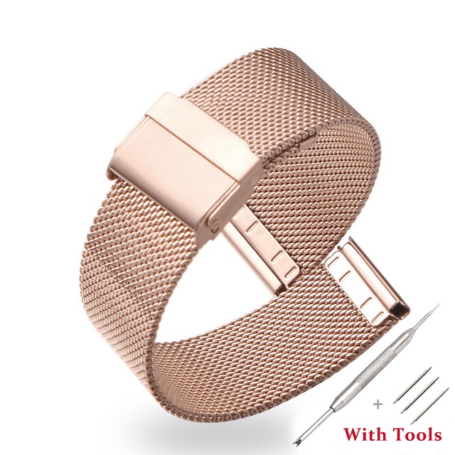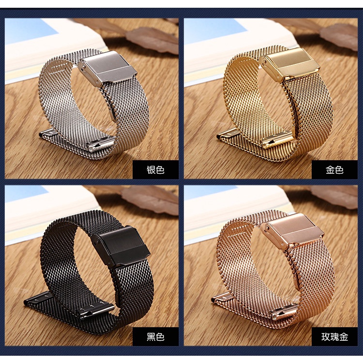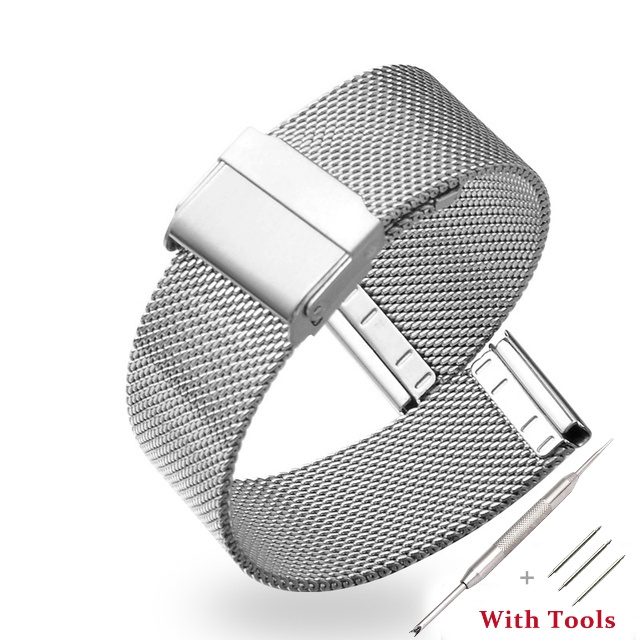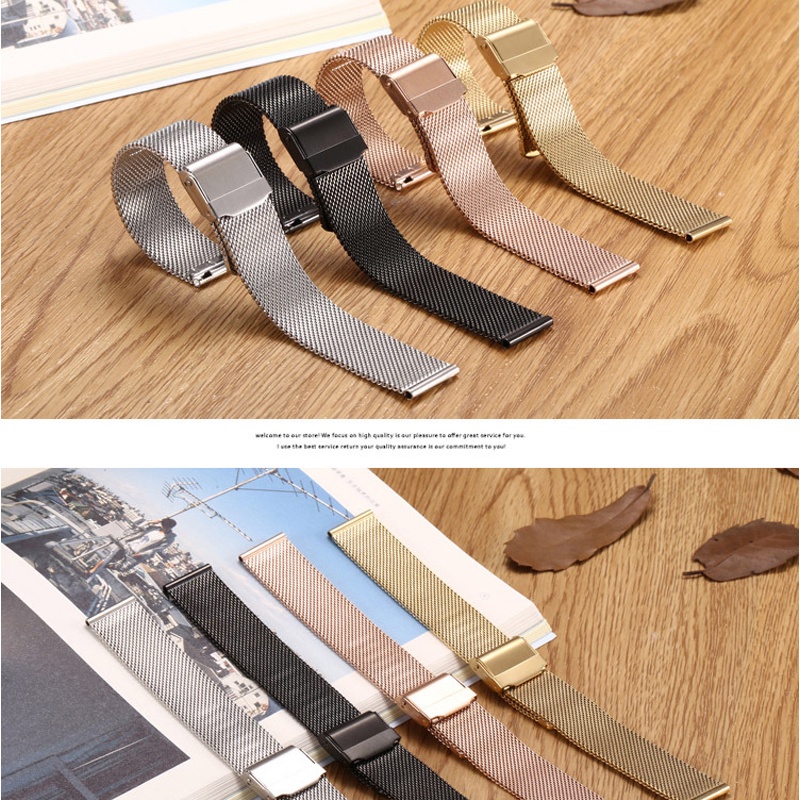 8 10 12 14 16 18 19 20 21 22 24 26mm Width Milanese Metal Wrist Watchband Stainless Steel Double Safety Buckle Flat Head