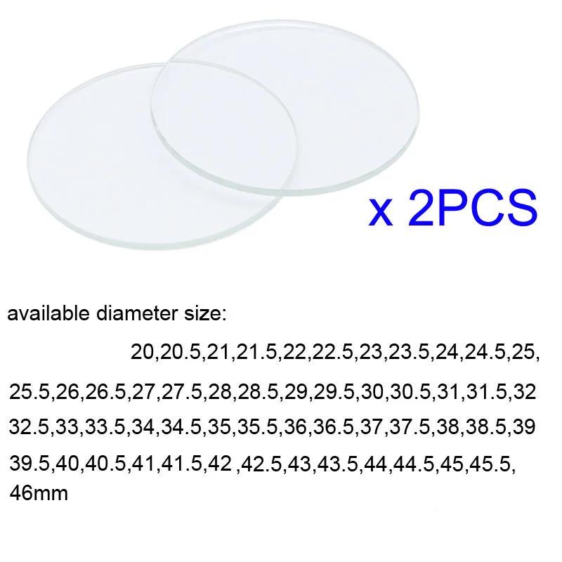 2PCS Thickness 2.0mm Round Watch Glass 20mm to 46mm Smartwatch Replacement Crystal Lens Flat Mirror Glass Watch Repair