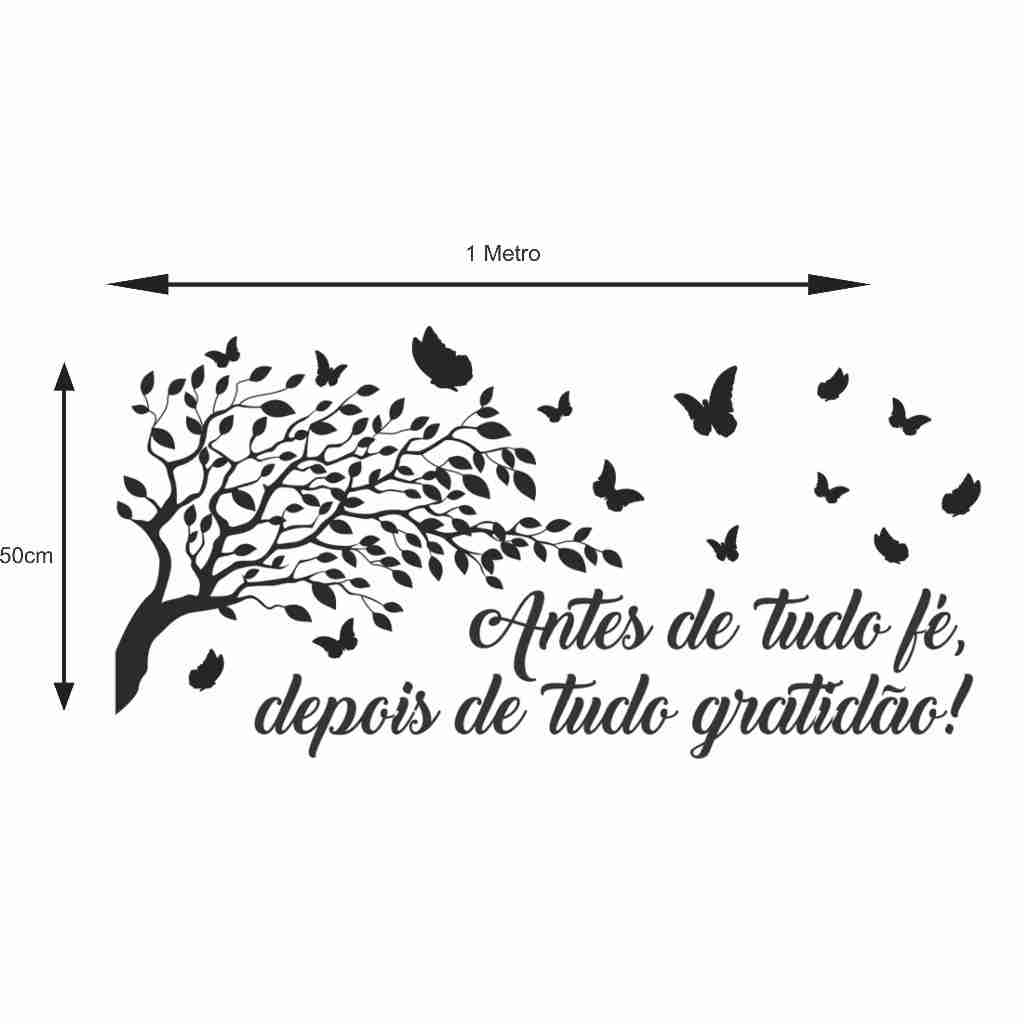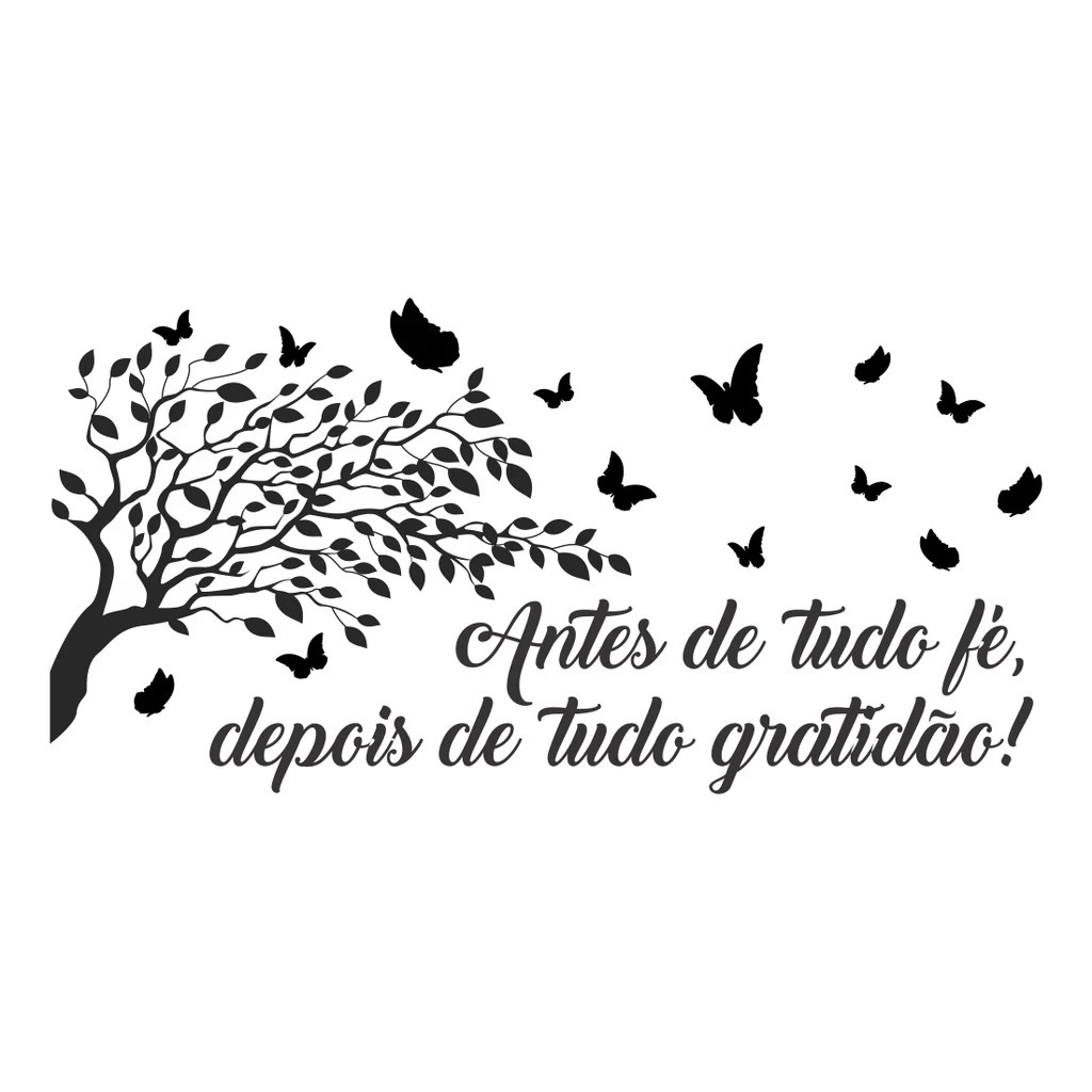 Adesivo Decorativo de Parede Frase Motivação Antes de Tudo Fé, Depois Gratidão com Borboletas Decorativo de Parede