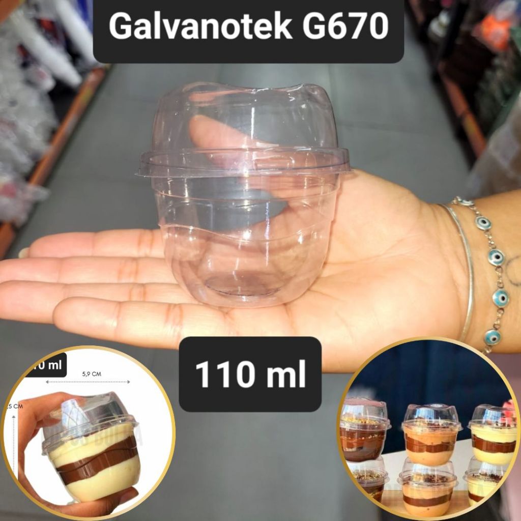 Potes 110 ml c/Tampa Alta G670 Galvanotek p/ Sobremesa Doces Mousses 10 20 30 40 50 Unidades