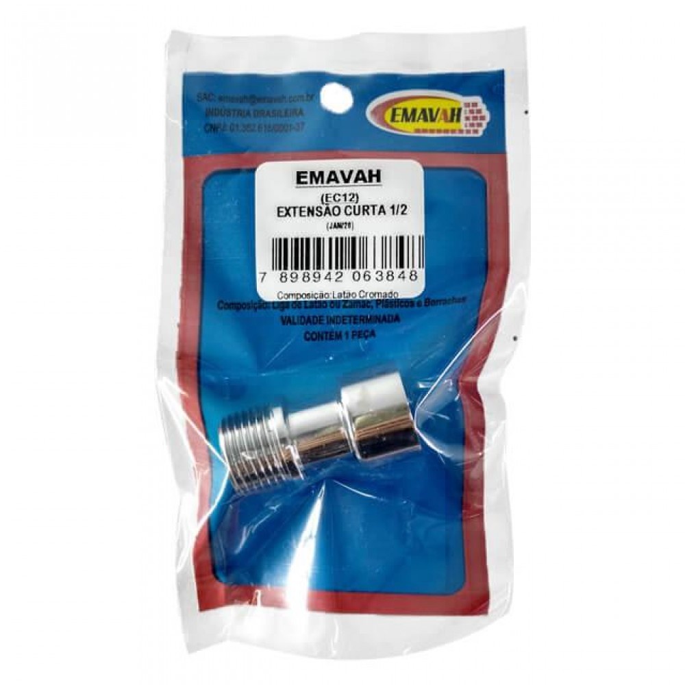 Extensor Cromado Prolongador Curto Torneira Chuveiro 1/2''