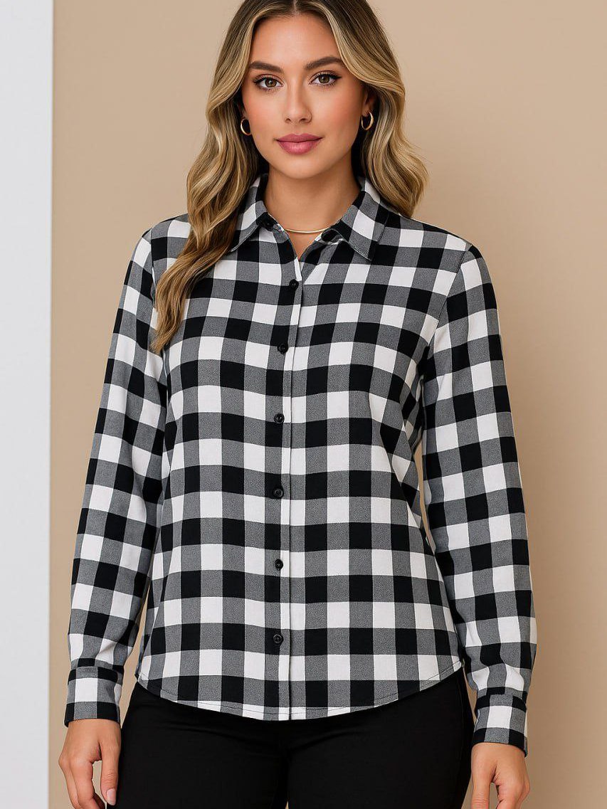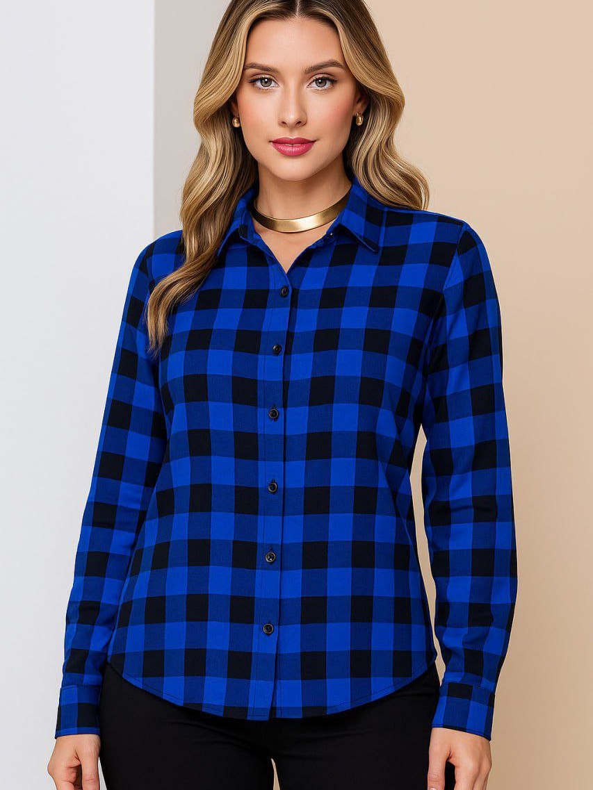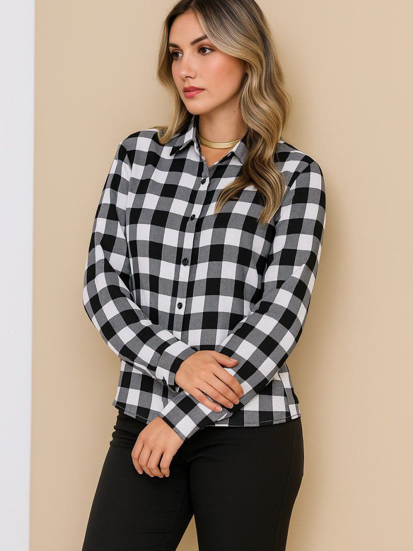 Camisa Xadrez Feminina Manga Longa Blusa Xadrez