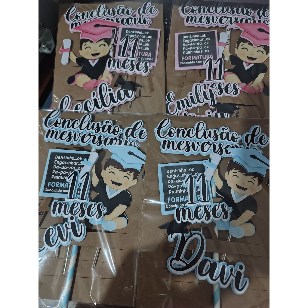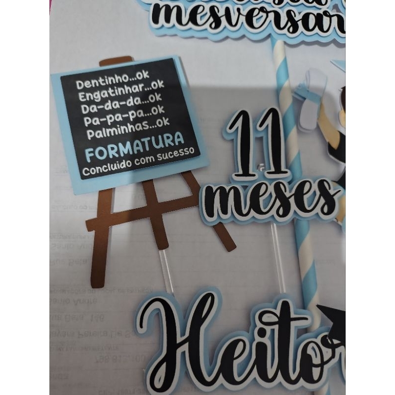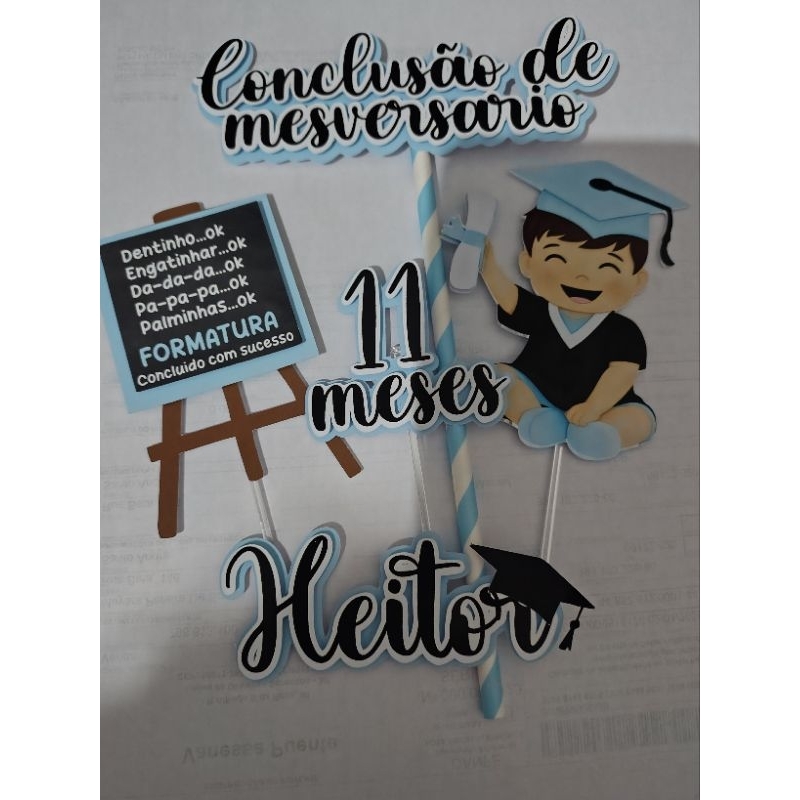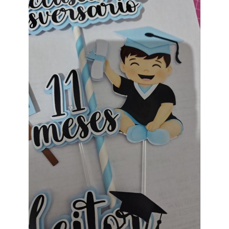 Topper de Bolo Conclusão de Mesversário –Menina ou Menino Tema Formatura Baby – Personalizado