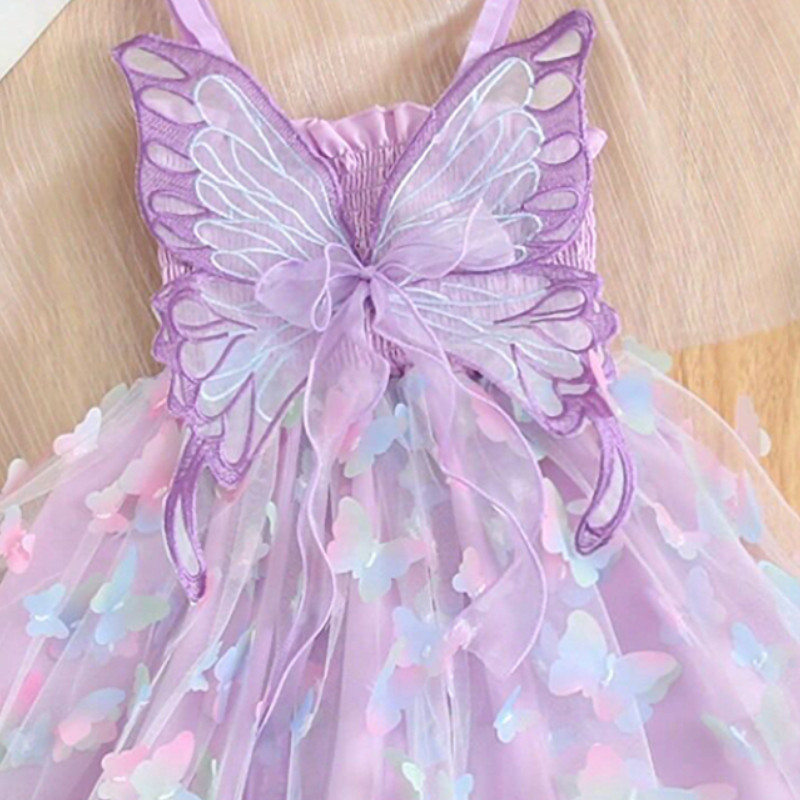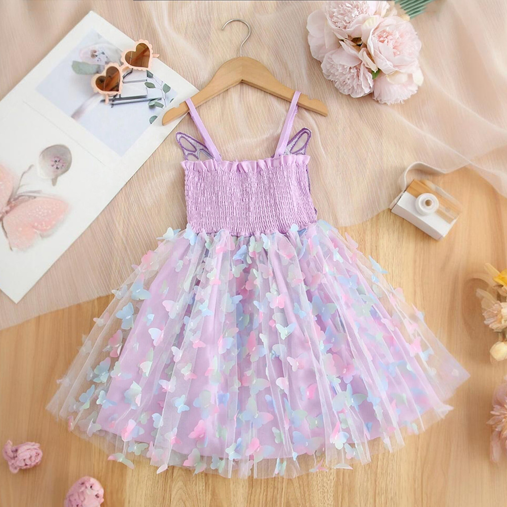 WFRV Bonito Menina Verão 2-6 Festa De Aniversário Arco-Íris Borboleta Luz Fio Vestido Asas Estilingue Princesa Celebraçã