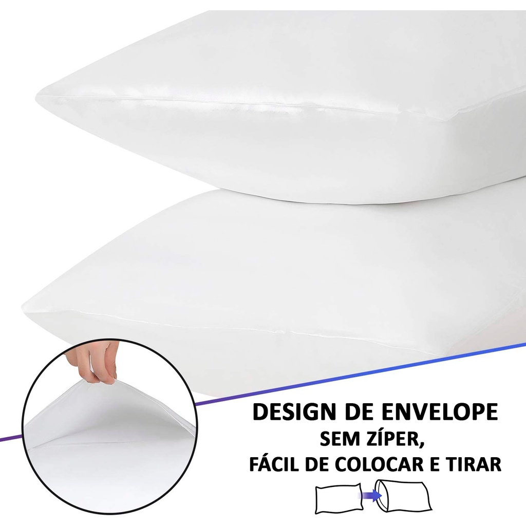Kit 2 Fronhas de Cetim Luxo Alto Brilho Anti Frizz Tamanho 50 X 70
