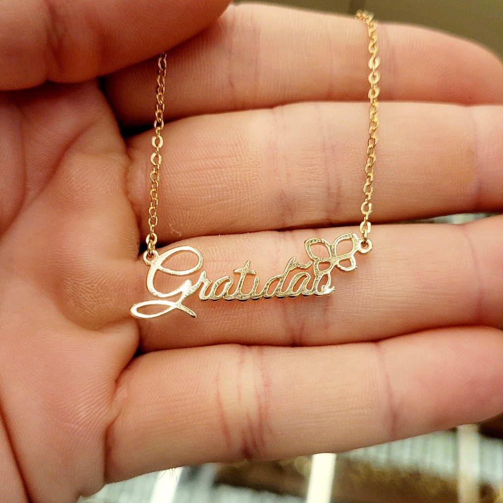 Colar Rommanel Gratidão com Borboleta Vazada Cordão de 50cm 532577