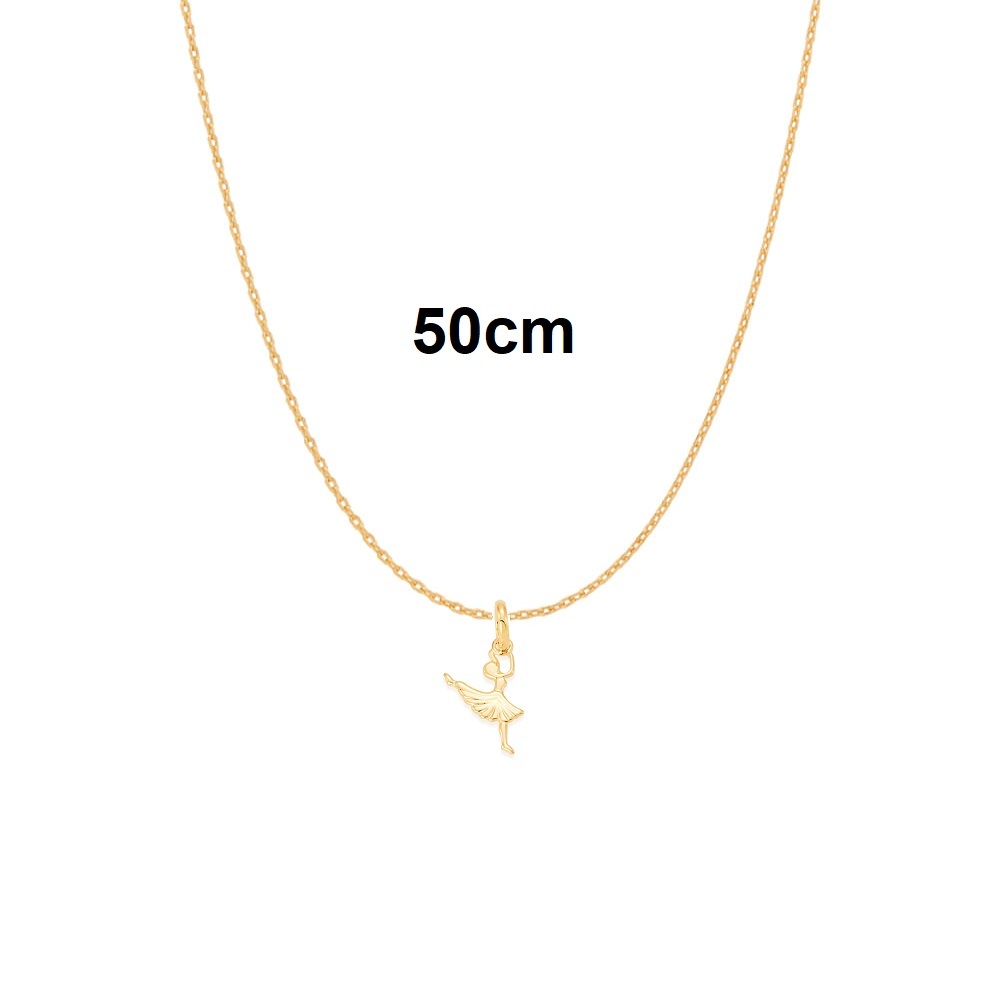 Conjunto Rommanel Cordão fio Cadeado e Pingente Bailarina 42cm / 50cm