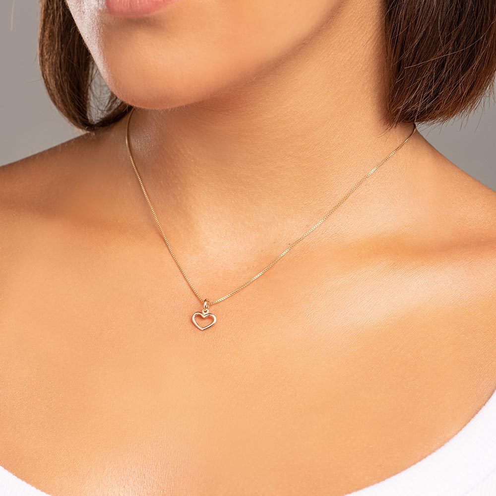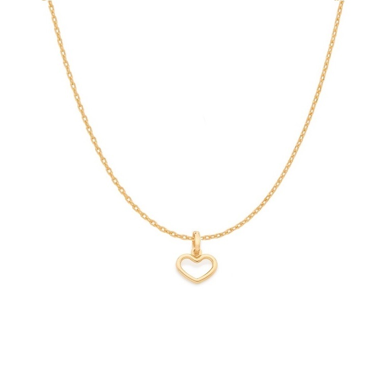 Conjunto Rommanel Cordão fio Cadeado e Pingente Coração Vazado 42cm / 50cm