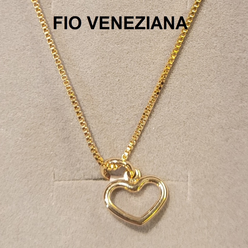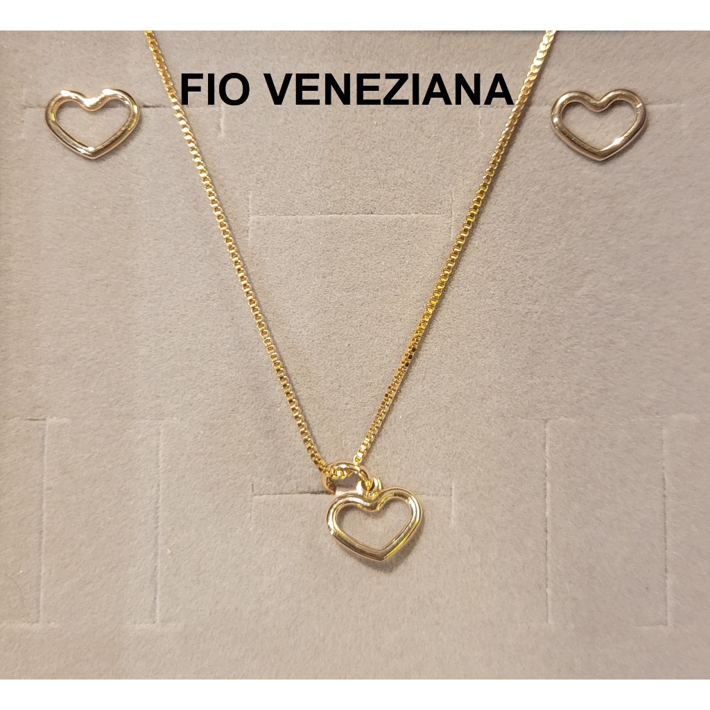 Conjunto Rommanel Colar Fio Veneziana Pingente e Brincos de Coração Vazado