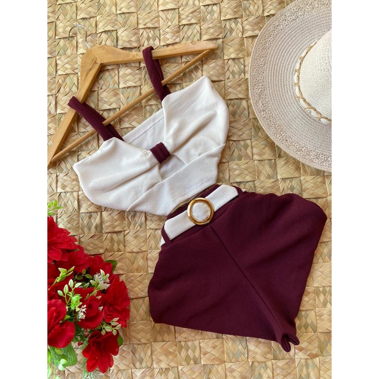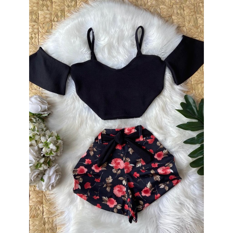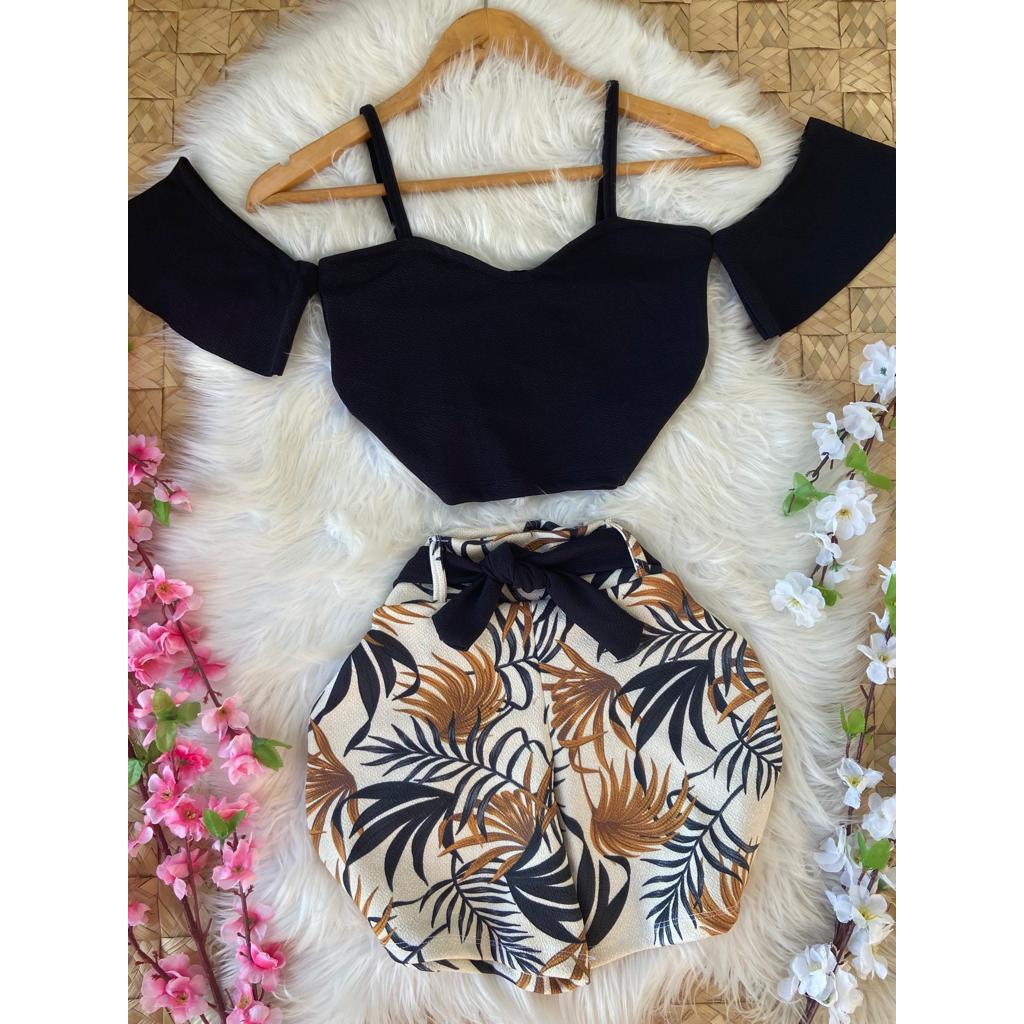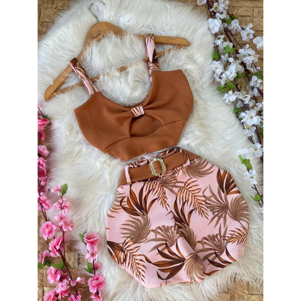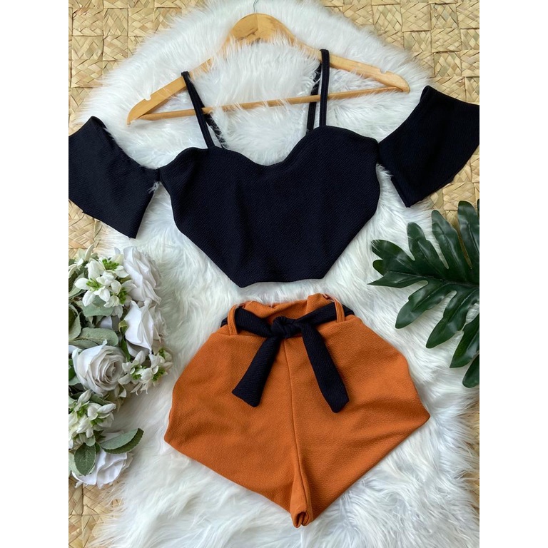 Conjunto LINDA MULHER (croped +short com cinto) PROMOÇÃO só HOJE