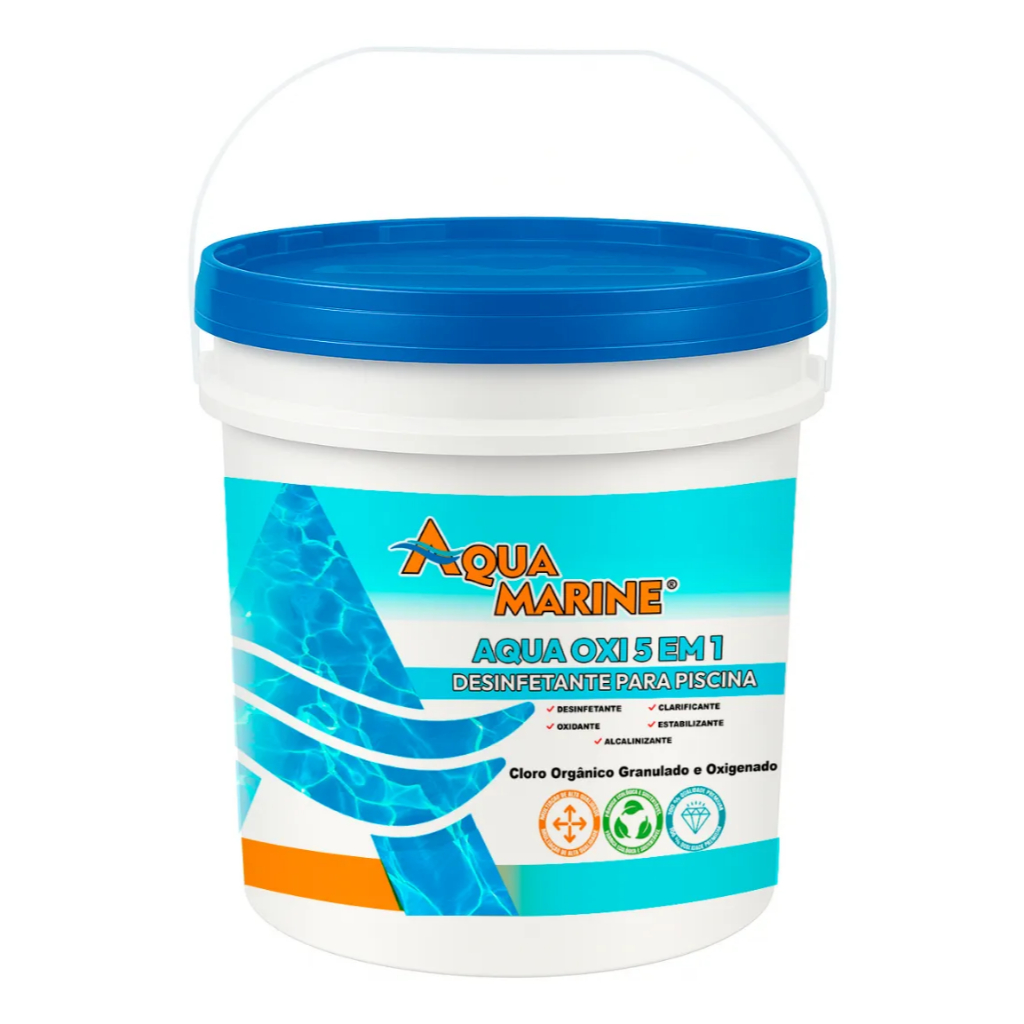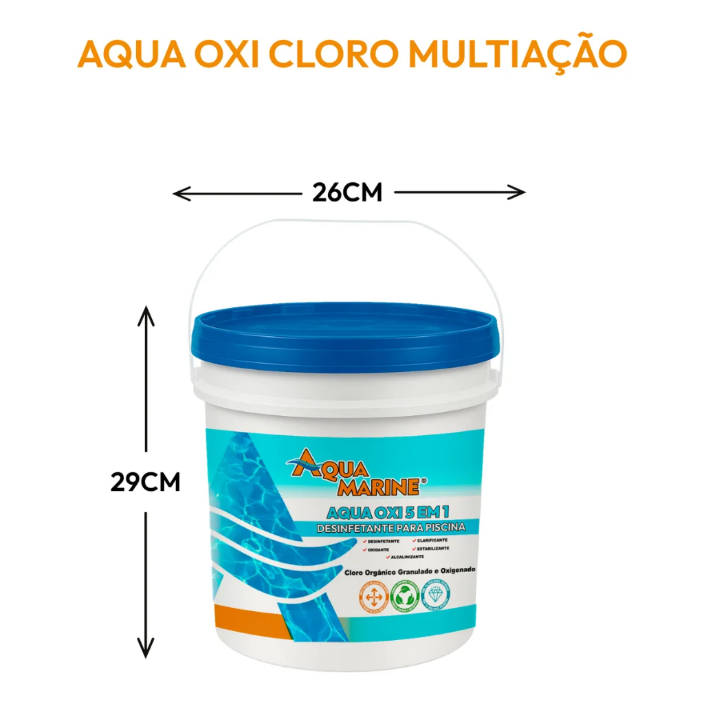 Cloro Oxi 5 em 1 AquaMarine 10kg–Oxidante, Desinfetante, Alcalinizante, Estabilizante e Clarificante