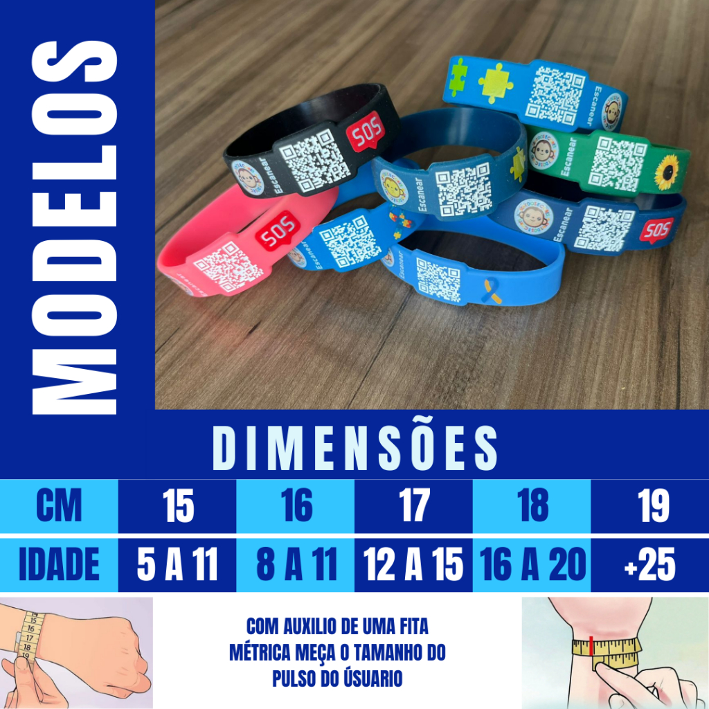 Pulseira De Identificação Inteligente - QR Code - Preta SOS - Entrega imediata