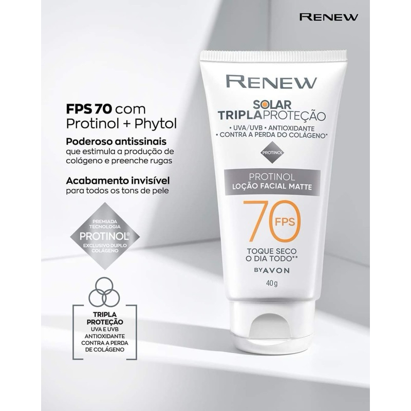 Protetor Solar Facial Avon Care FPS 30 / 50 Toque Seco Controle de Brilho • Renew FPS 70 Tripla Proteção Antissinais.