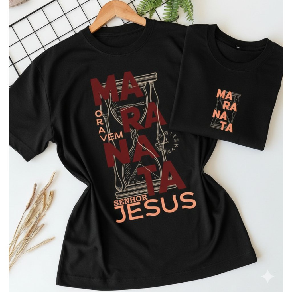 Camiseta Cristã Maranata Feminina e Masculina Básica Blusa Moda Evangélica 100% Algodão Malha Premium