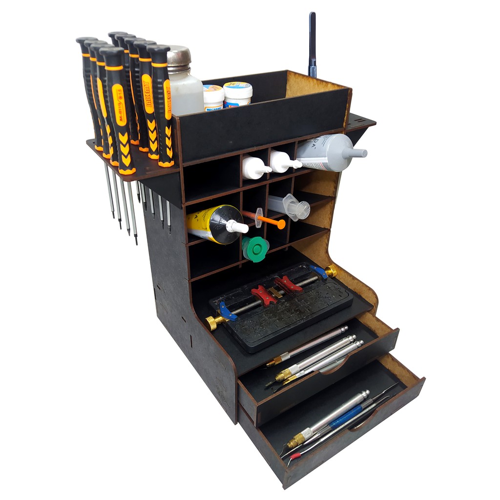 Organizador de Ferramentas de Bancada para Assistência Técnica e oficinas De Celular Em MDF