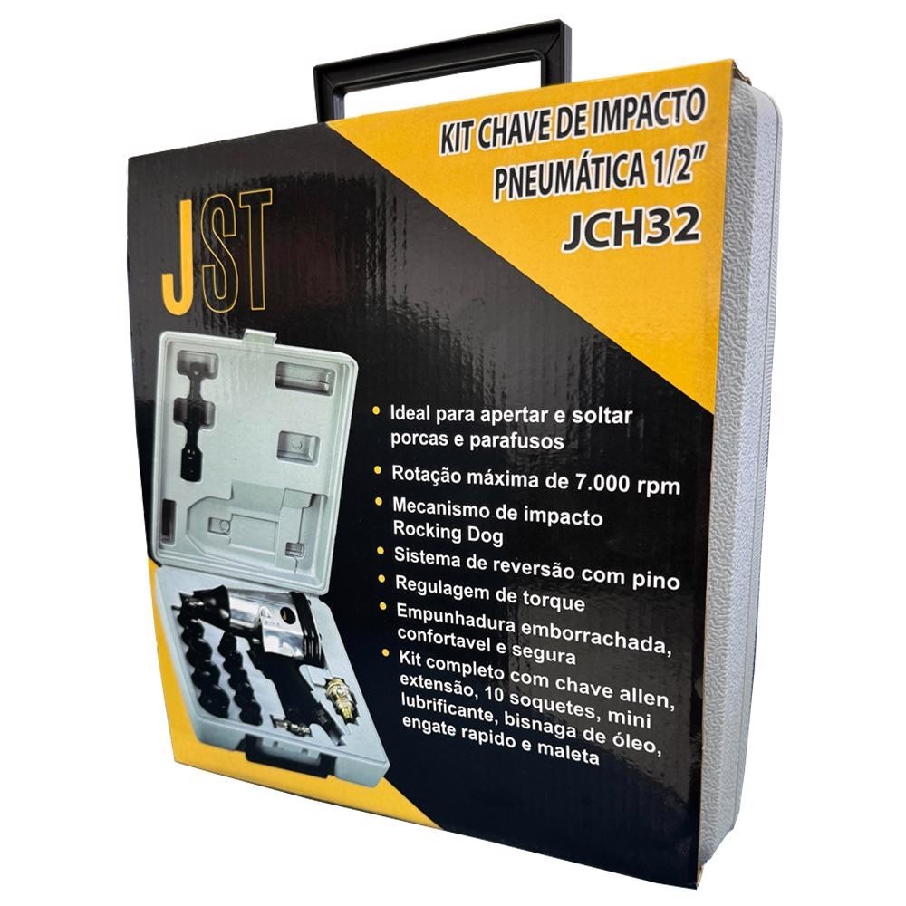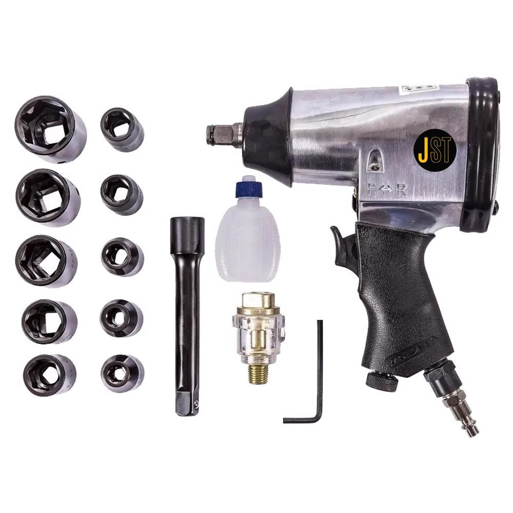 Chave de Impacto Pneumática 1/2 JST JCH32 com Kit 10 Soquetes Lubrificador Maleta