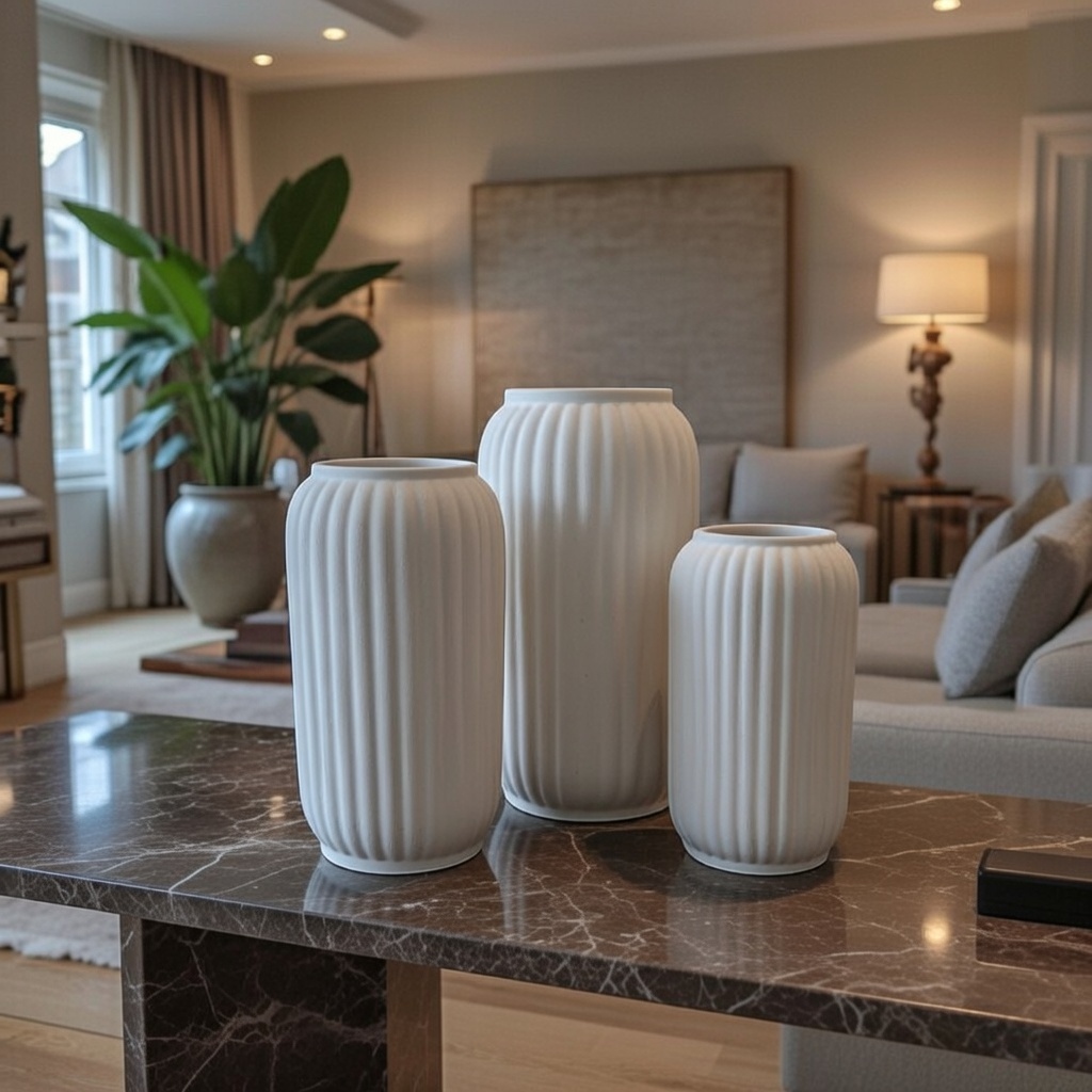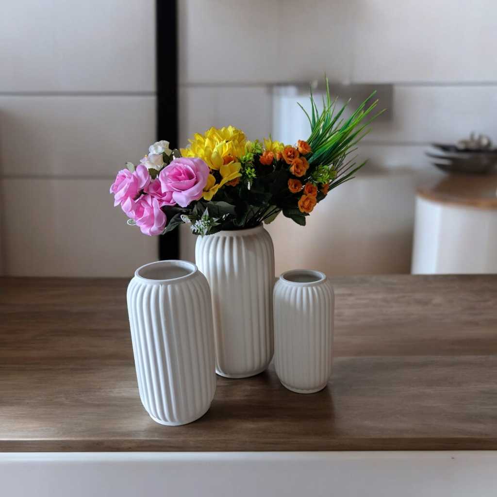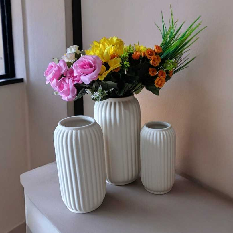 Vaso Floreira CILINDRO GOMO em Cerâmica branca fosca Decorativo Decoração para pintar