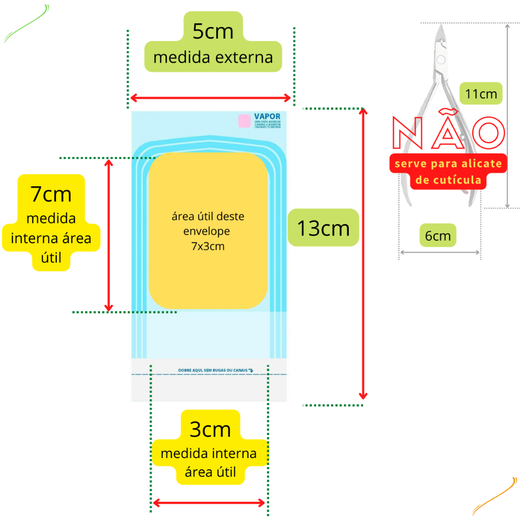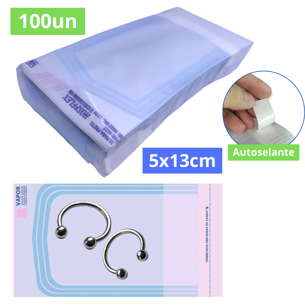 Envelope Esterilização 5x13cm em Autoclave Piercing Joias Limas Brocas Brincos manicure podóloga