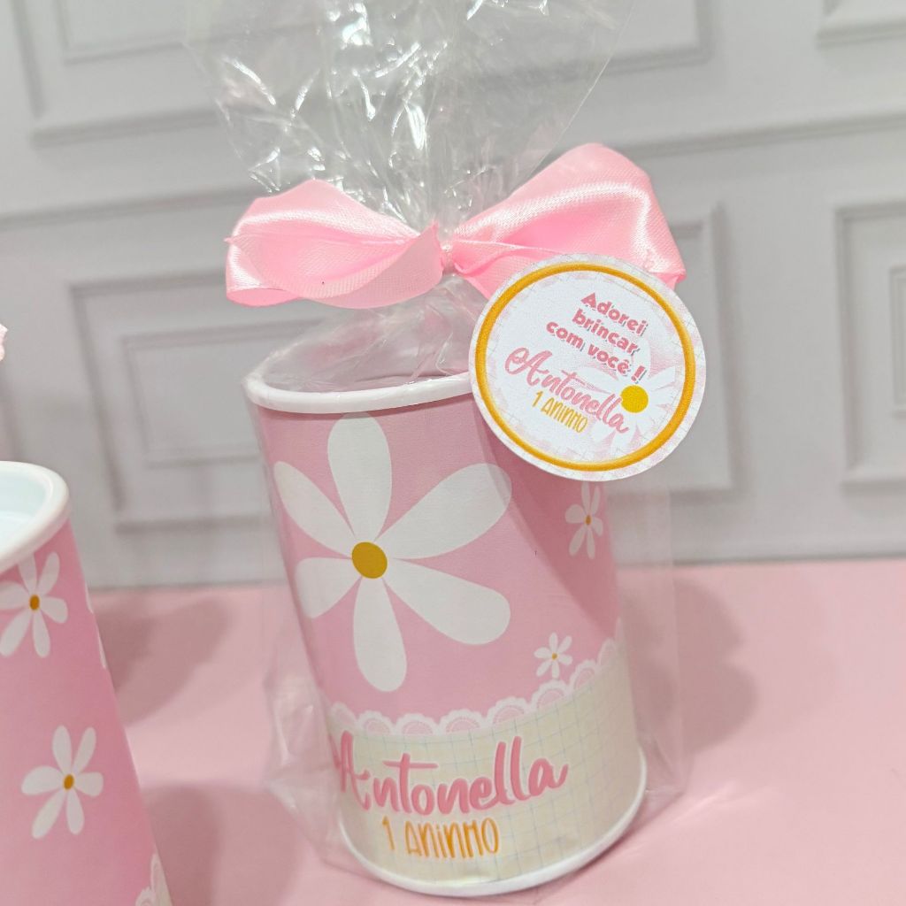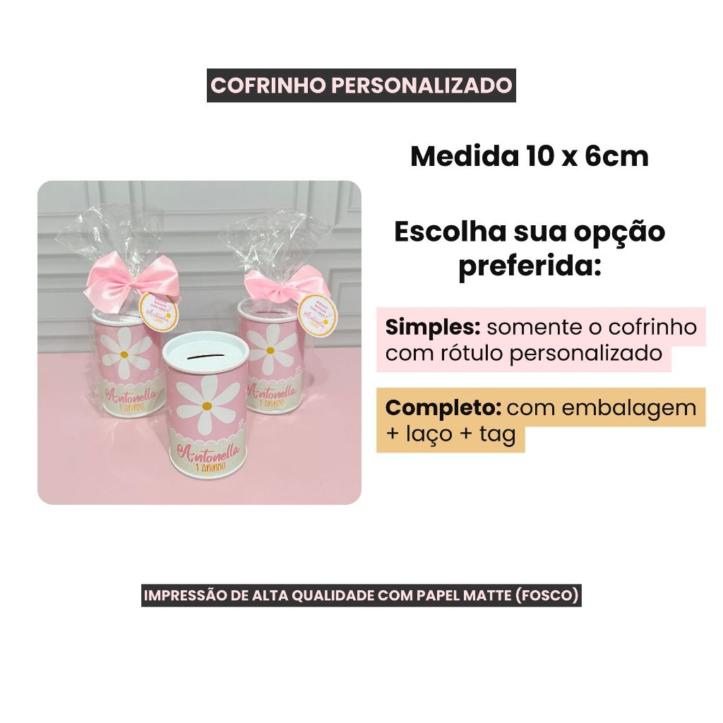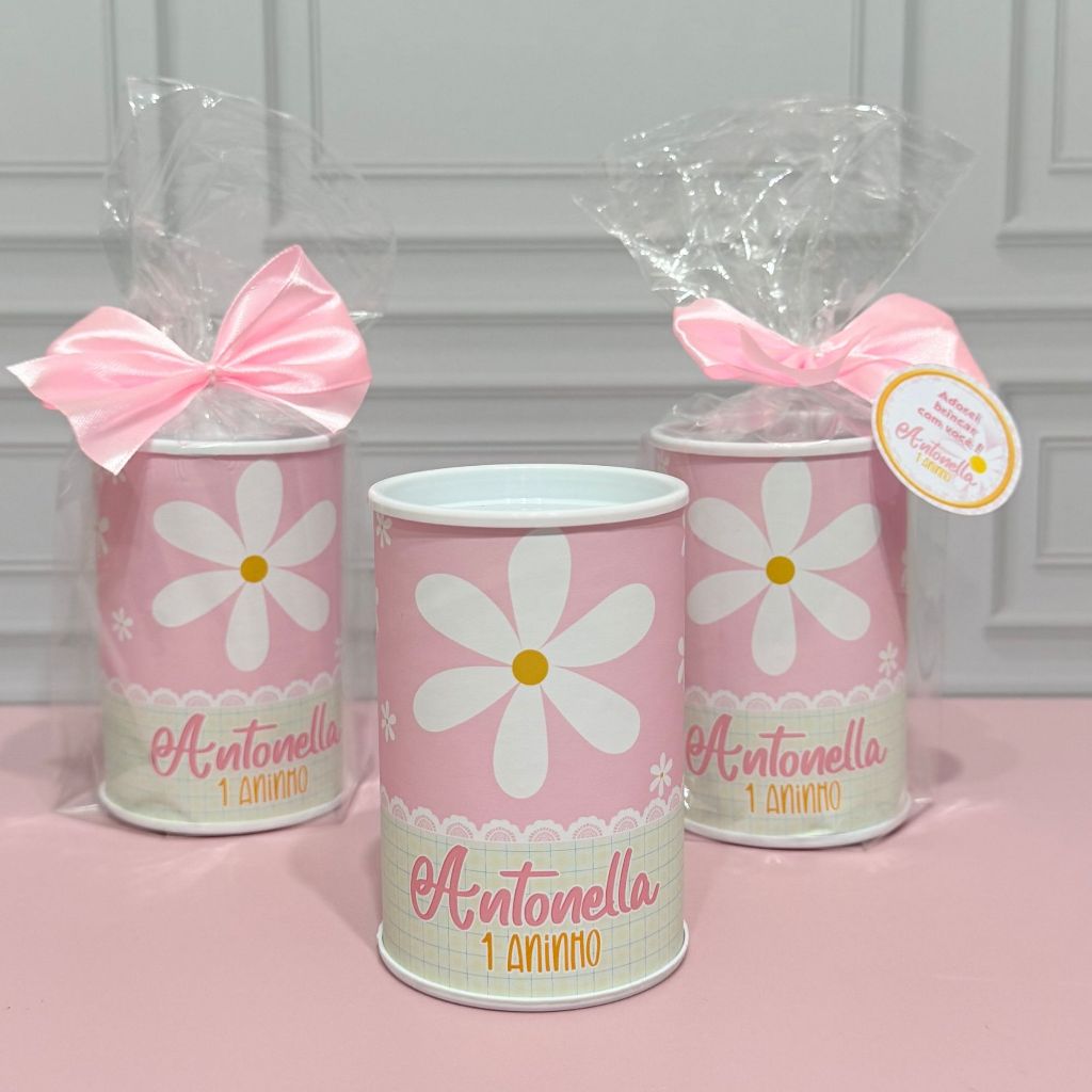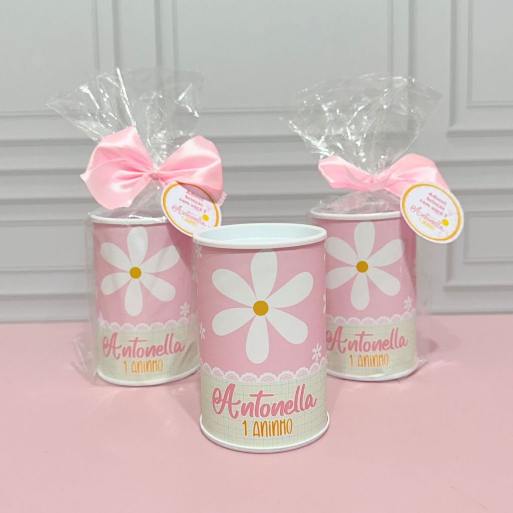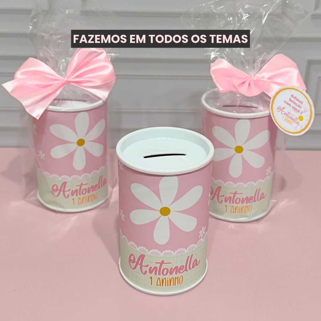 Cofrinho Personalizado com embalagem Margaridas + laço + tag - FAZEMOS EM TODOS OS TEMAS