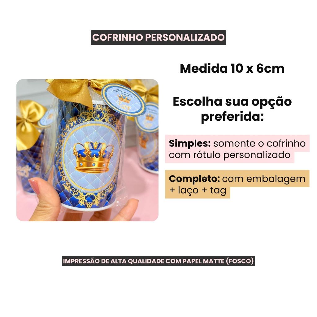 Cofrinho Personalizado REALEZA com embalagem + laço + tag - FAZEMOS EM TODOS OS TEMAS