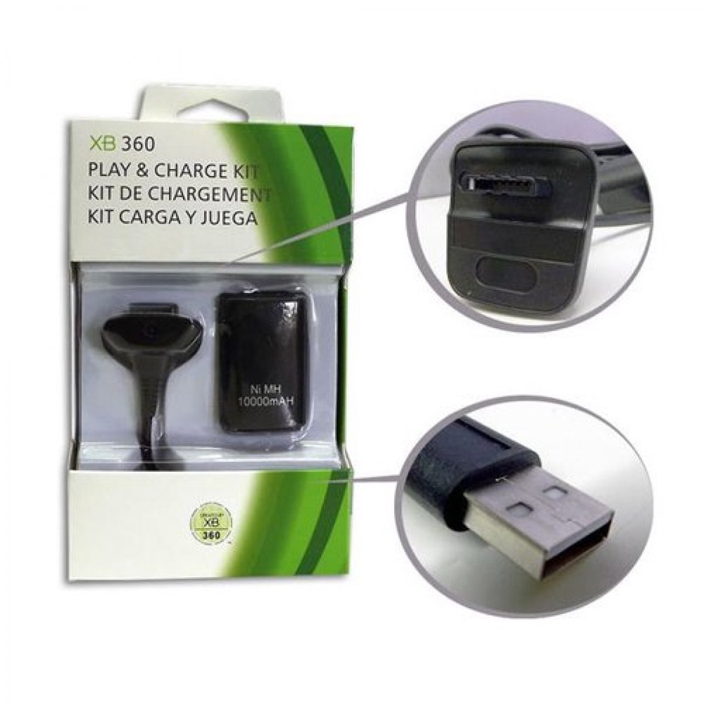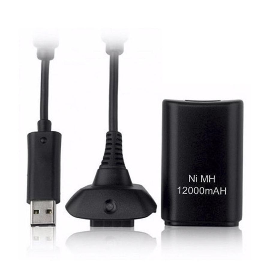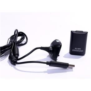 Bateria Para Controle Xbox 360 Com Cabo E Carregador Preto