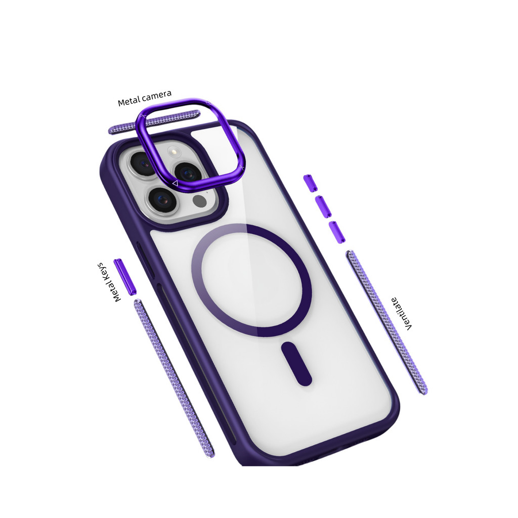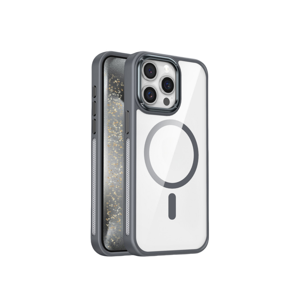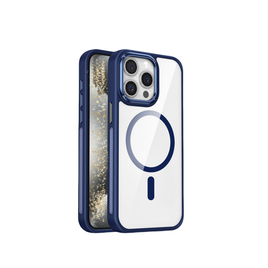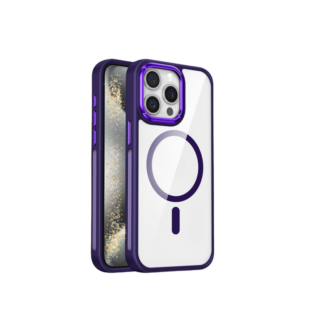 Capa Magnética Transparente Anti-Impacto com Borda Colorida Compatível iPhone 11 12 13 14 15 16 Pro Max e S23 S24 Ultra