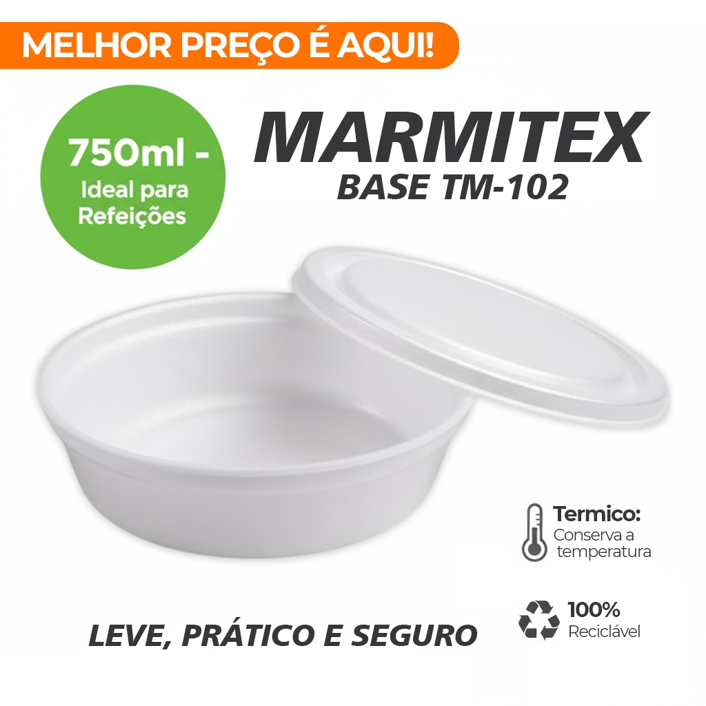 Kit 100 Marmitex Isopor 750ml Térmica Média Totalplast TM-102 Embalagem Delivery | PRONTA ENTREGA