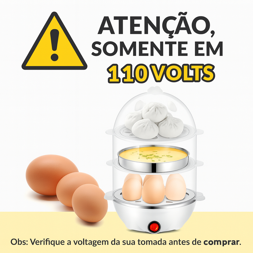 Cozedor Elétrico Ovos, Legumes e Mais 3 Andares até 21 Ovos - 110v