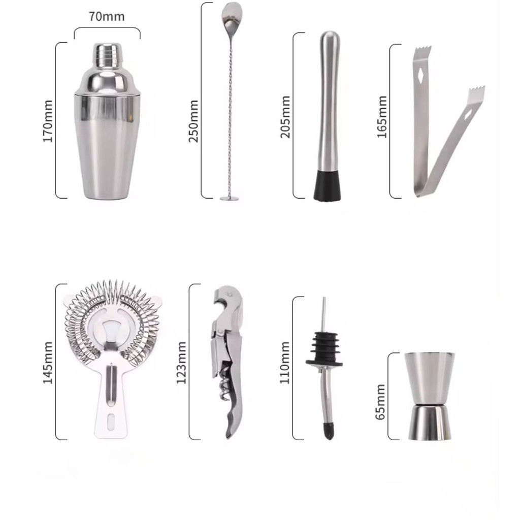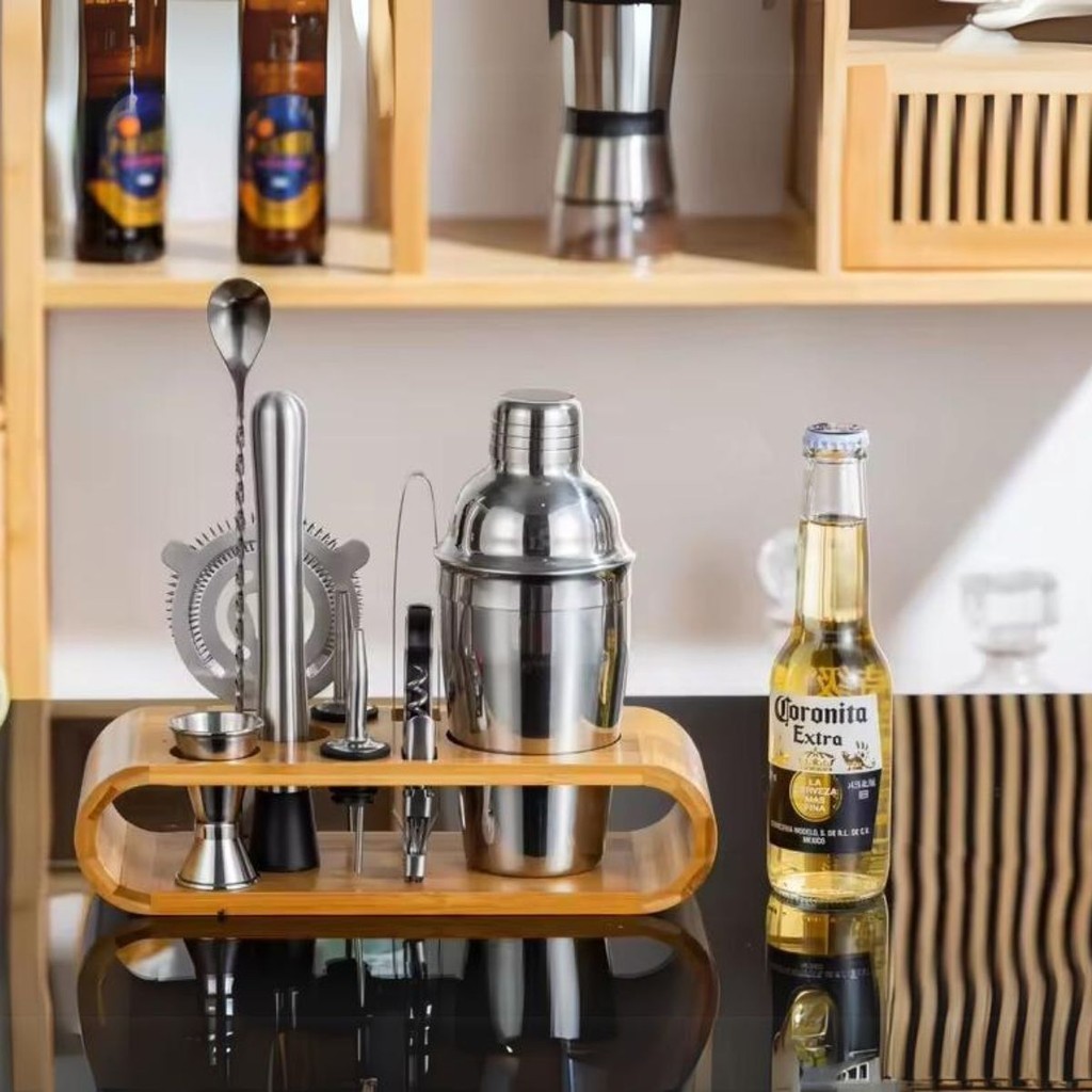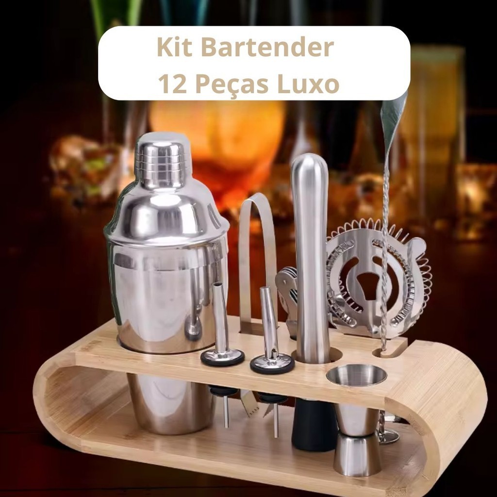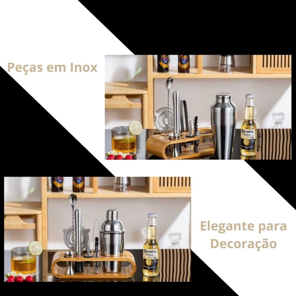Kit Homebar 12 Peças Inox Suporte Madeira Coqueteleira 550ml