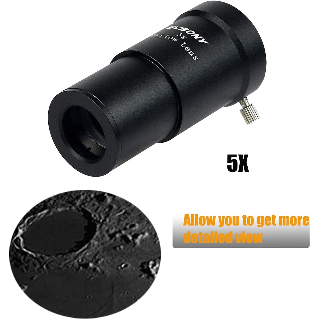 SVBONY 1,25 polegadas 5X Barlow Lens Metal Multi Revestido Banda Larga Filme Verde para Ocular Telescópio Padrão Astronomia