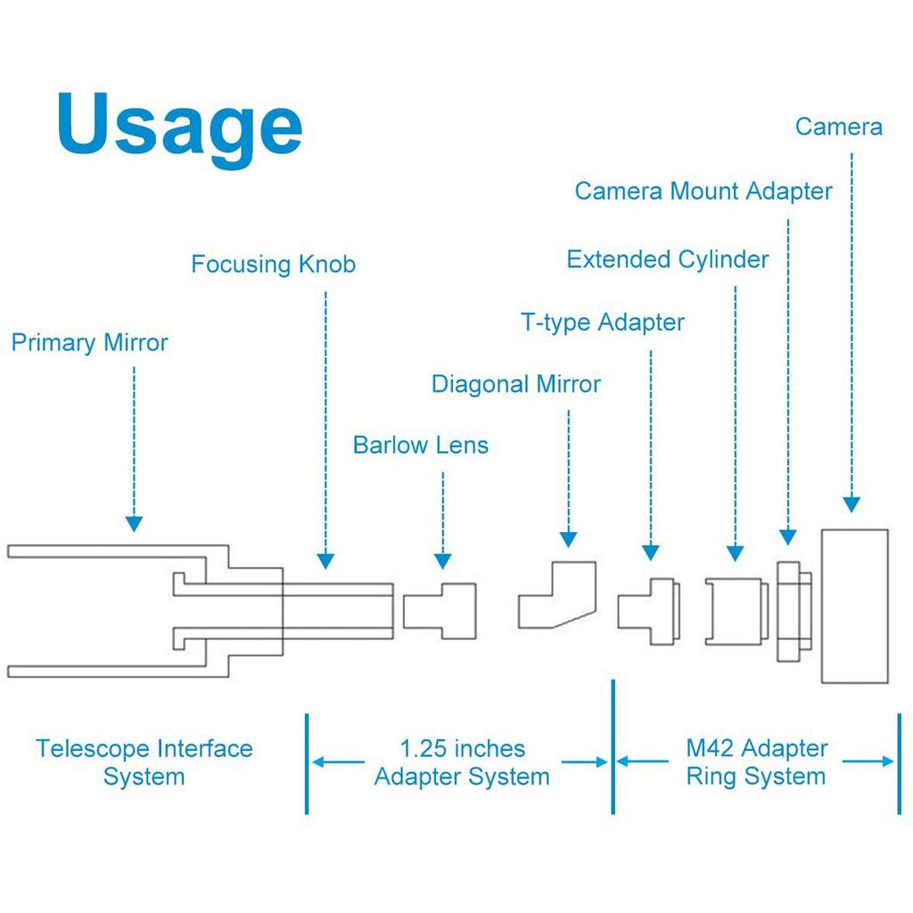 SVBONY Adaptador De Tubo De Extensão De 1,25 Polegadas CA1 Telescópio Astronomia M42 Rosca T-Mount + Anel T2 Para/Câmera F9105A
