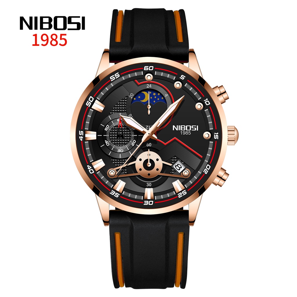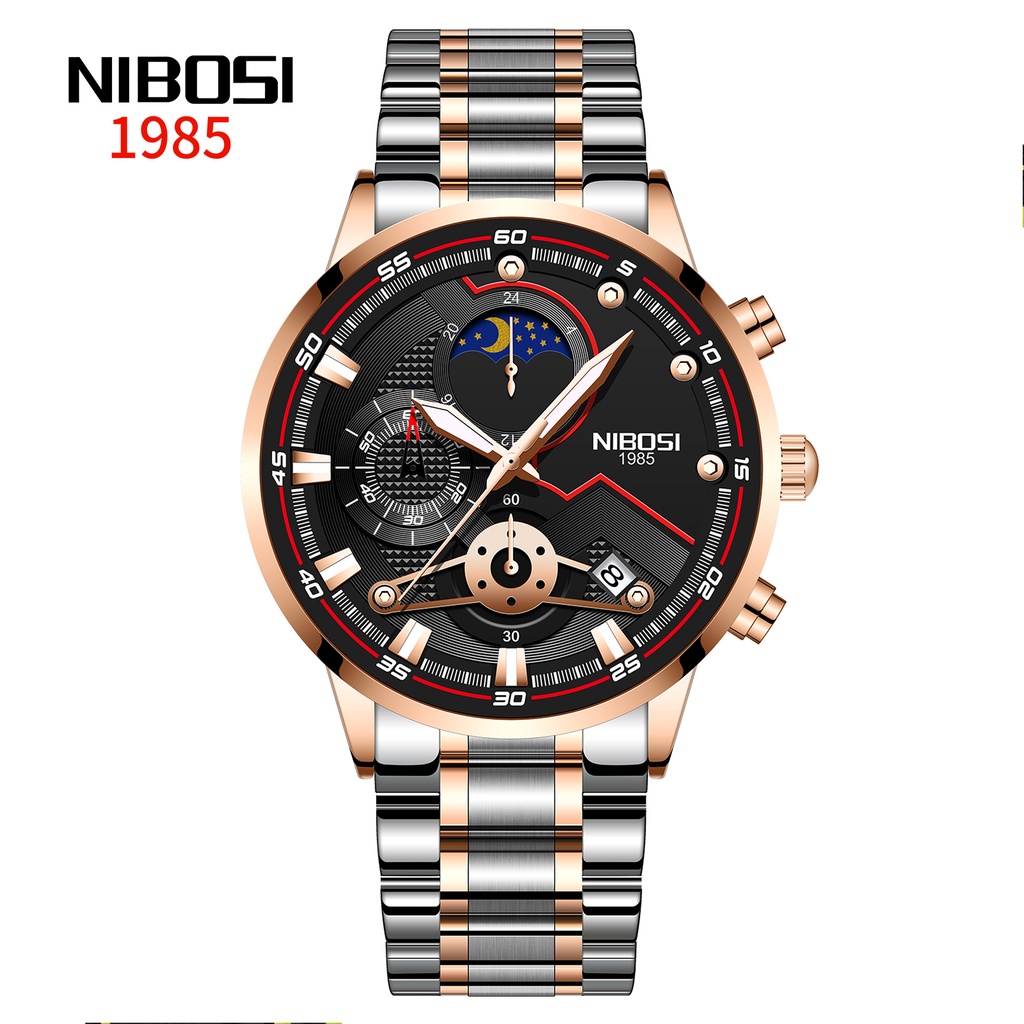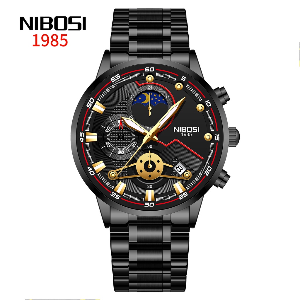 NIBOSI Novos Relógios Masculinos Relógio Casual De Luxo Para Homens Cronógrafo à Prova D'água Relógio De Pulso Esporte Ouro Quartzo