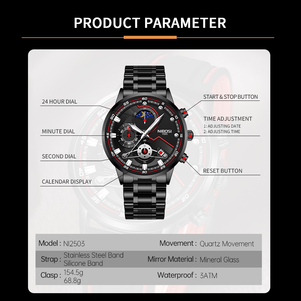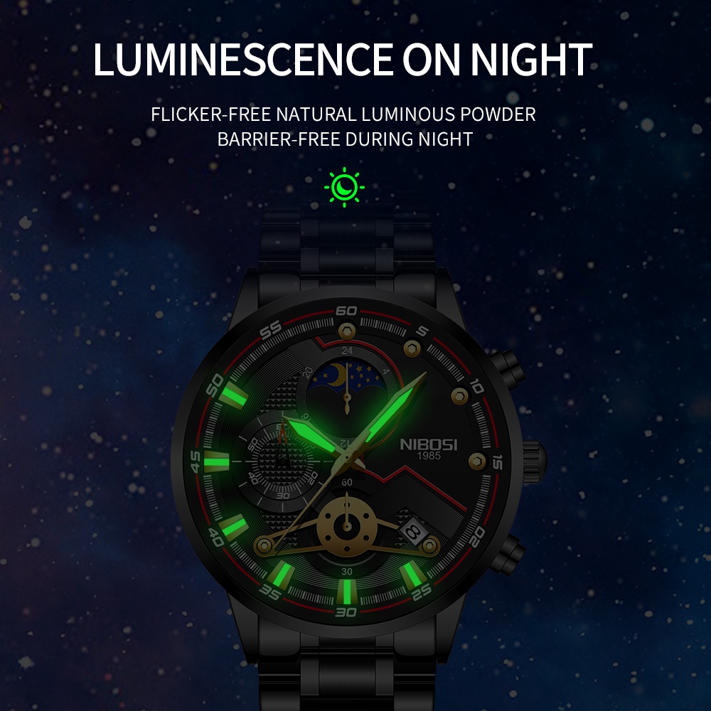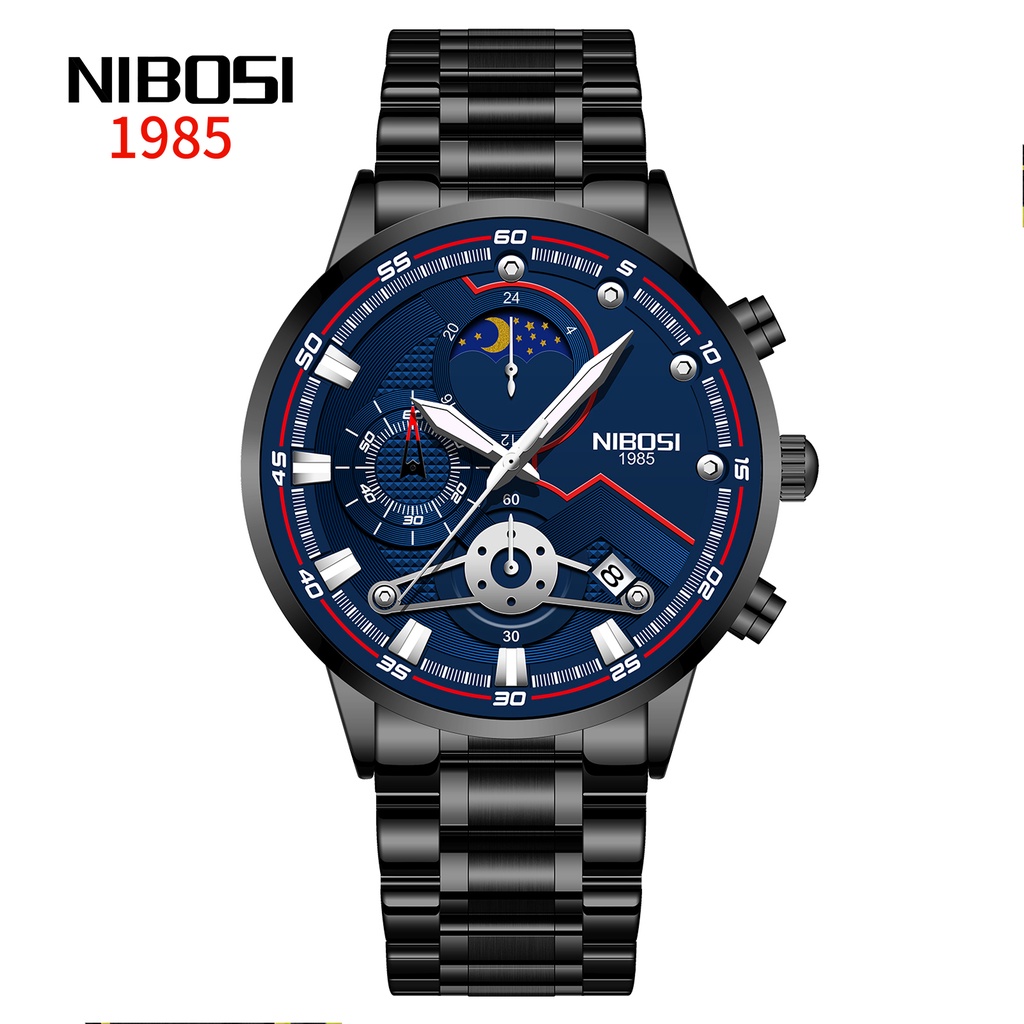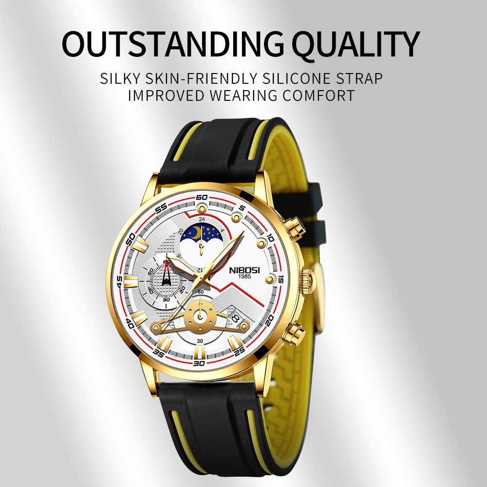NIBOSI Novos Relógios Masculinos Relógio Casual De Luxo Para Homens Cronógrafo à Prova D'água Relógio De Pulso Esporte Ouro Quartzo