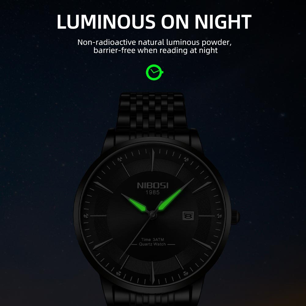 Relógio Masculino NIBOSI Verde Dourado Luxo Moda Quartz 2525