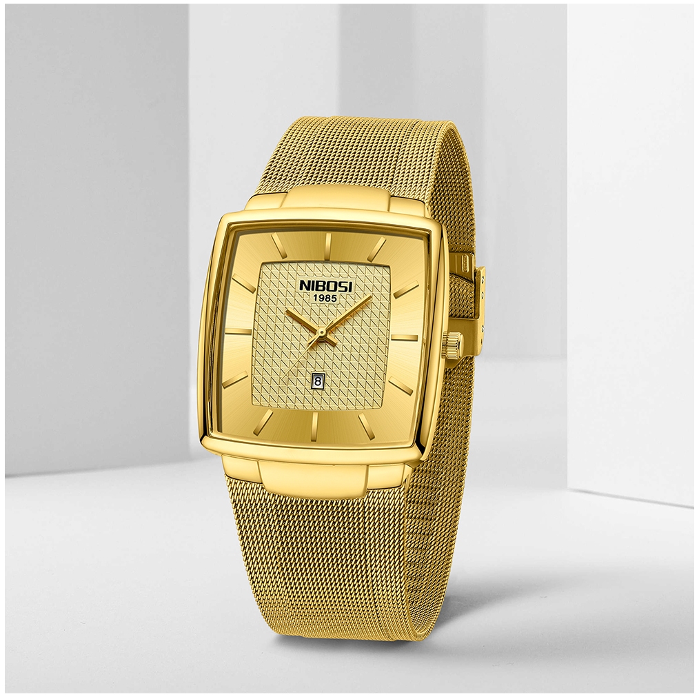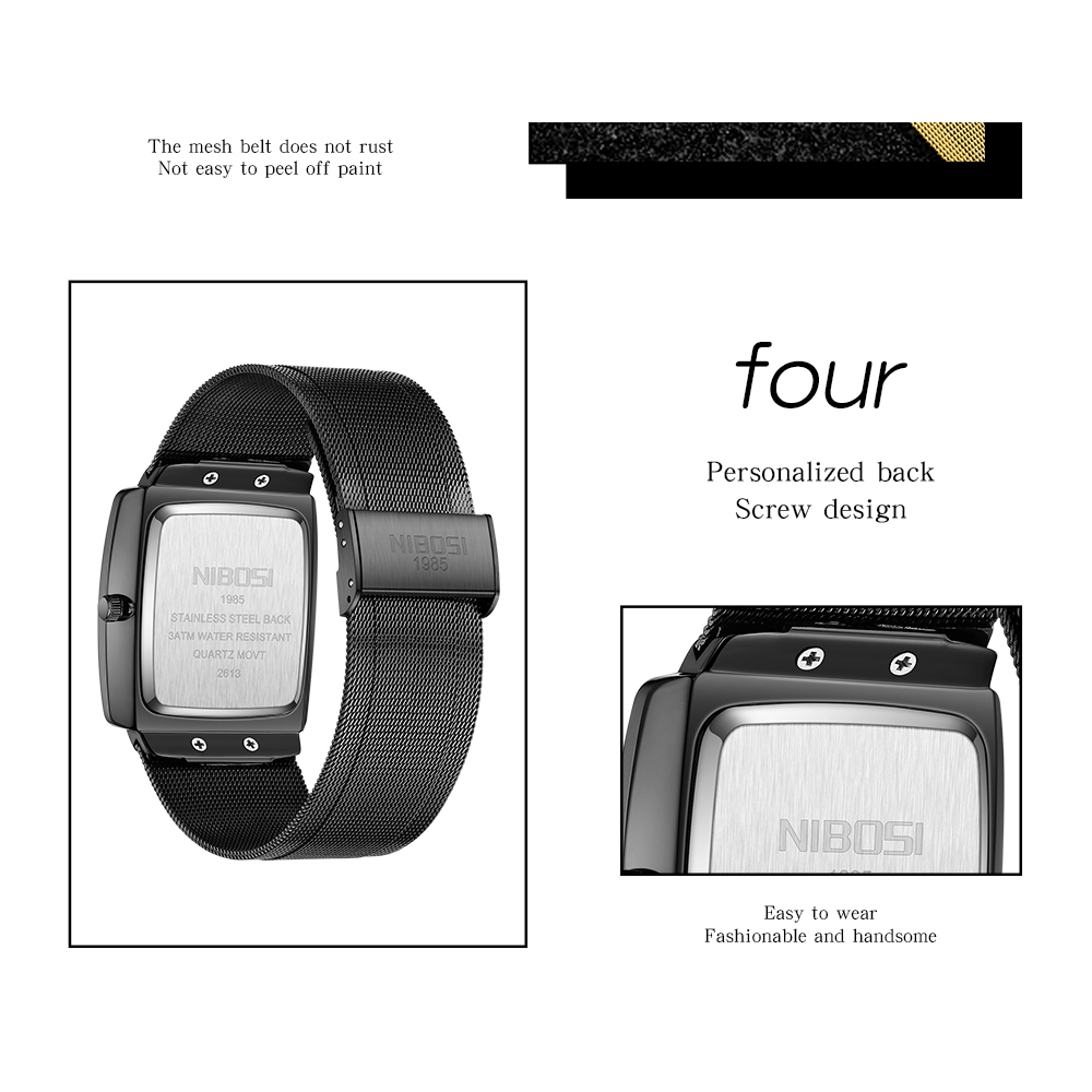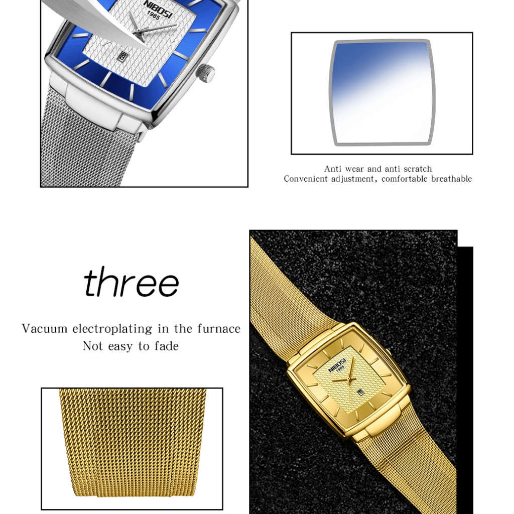 Relógio NIBOSI Men's watch original De Luxo Quadrado De Aço Inoxidável À Prova D'água