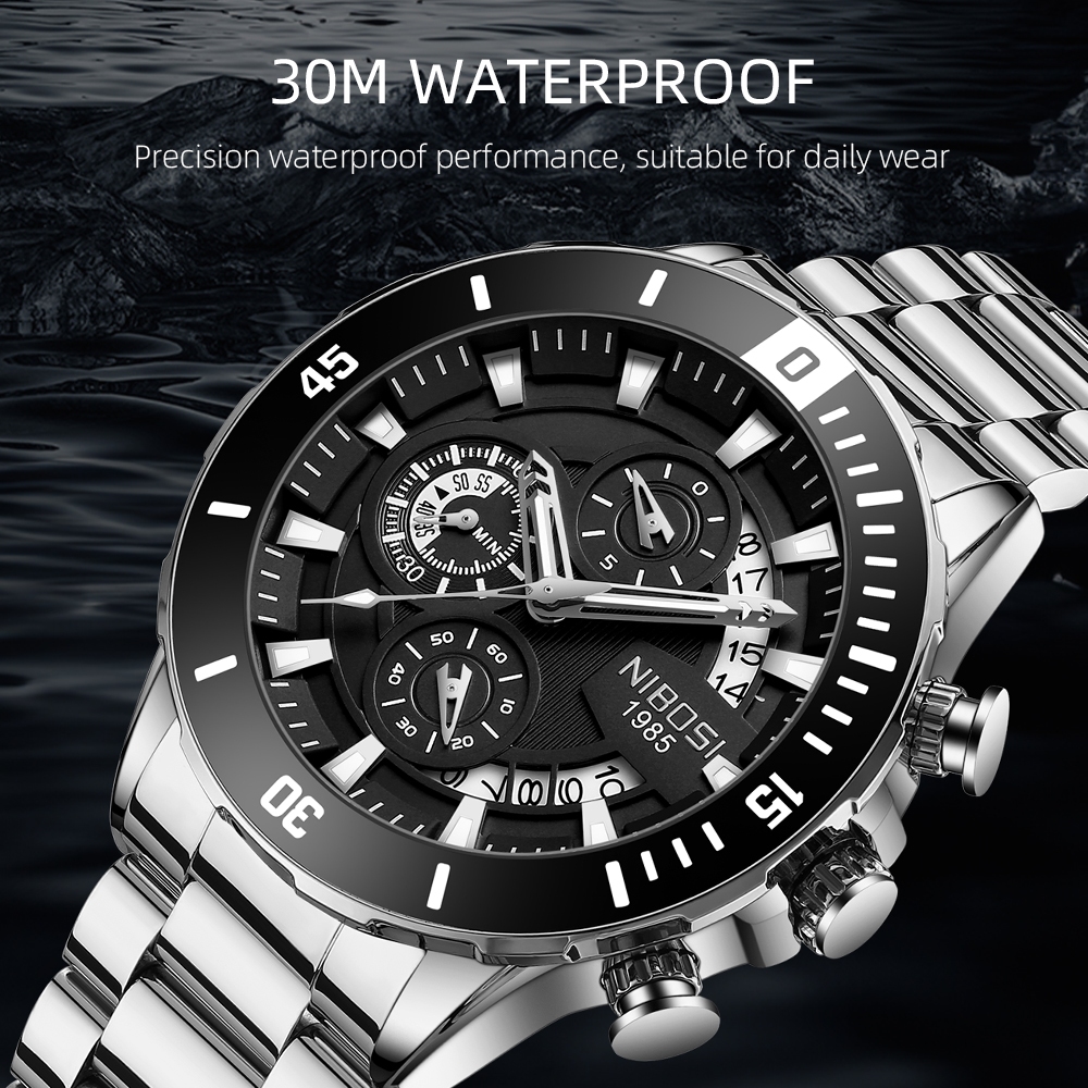NIBOSI Novo Relógio Masculino Comercial De Aço Inoxidável De Luxo Top 2592