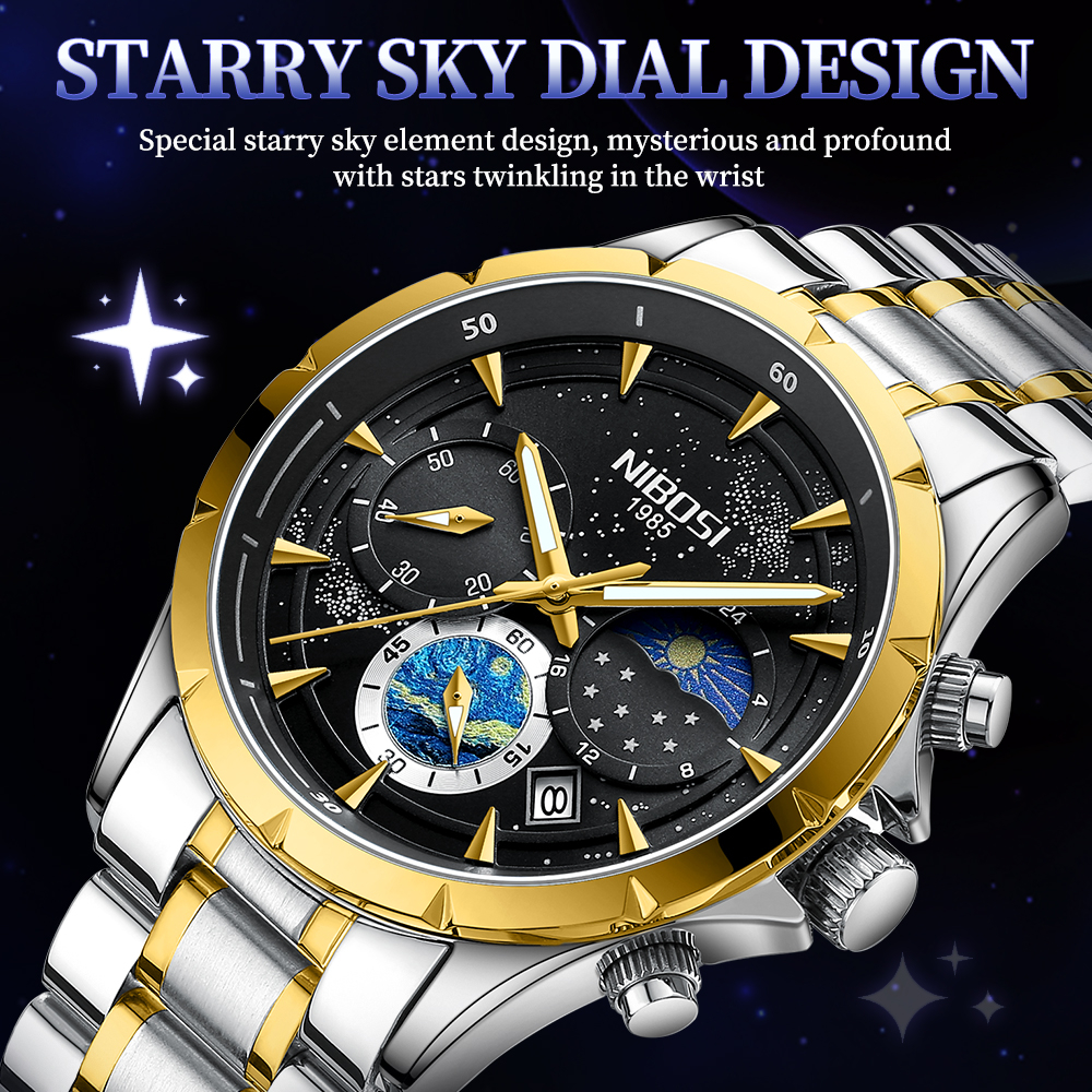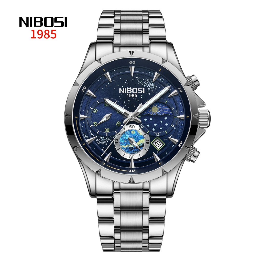 Relógio De Quartzo NIBOSI Luxury Men's Watch Night Moon Fase Lunar À Prova D'água 2602