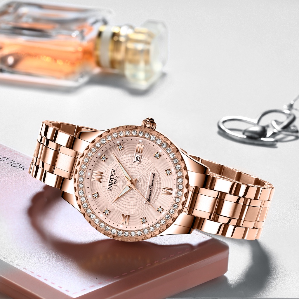 NIBOSI Relógio De Pulso Feminino De Quartzo À Prova D'água Com Strass