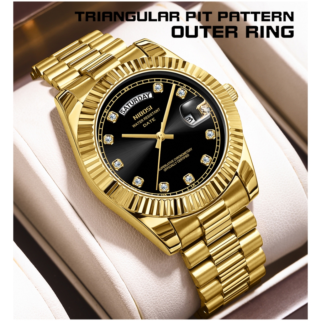 NIBOSI Relógio Original Rhinestone Embelezamento Da Semana De Exibição Do Calendário Masculino