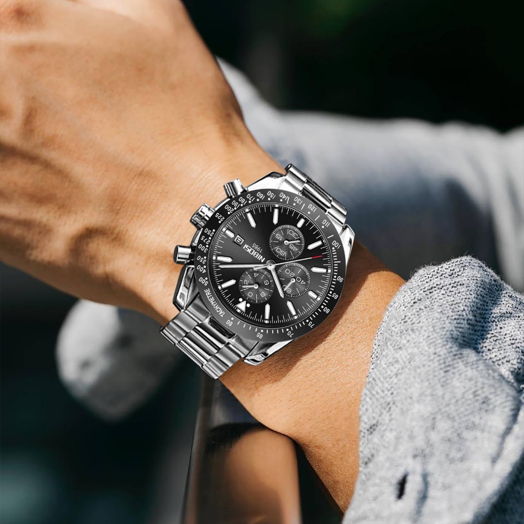 NIBOSI Relógio Calendário Multifuncional Luminoso original De Quartzo Analógico 30M Em Aço Inoxidável À Prova D'água Para Homens