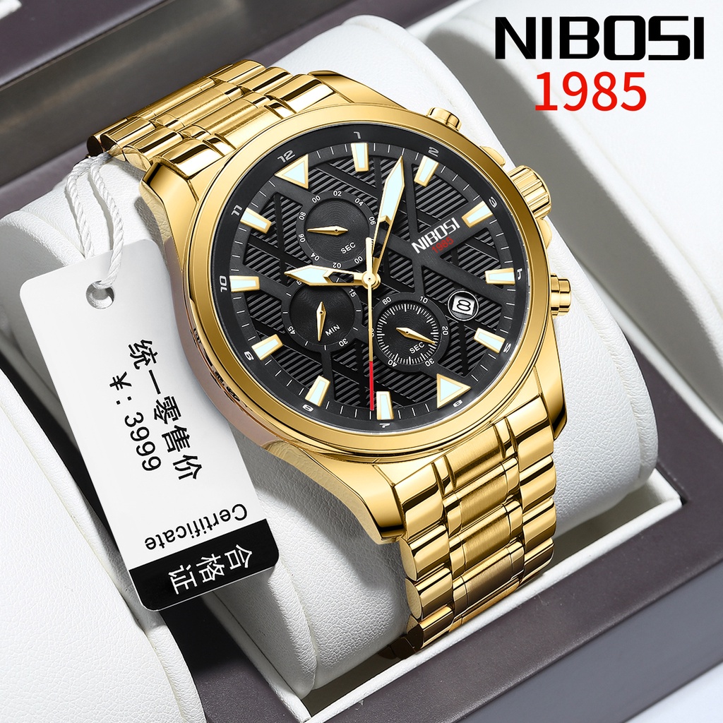 Relógio Masculino Luminoso De Luxo NIBOSI De Aço Inoxidável À Prova D'água 2510