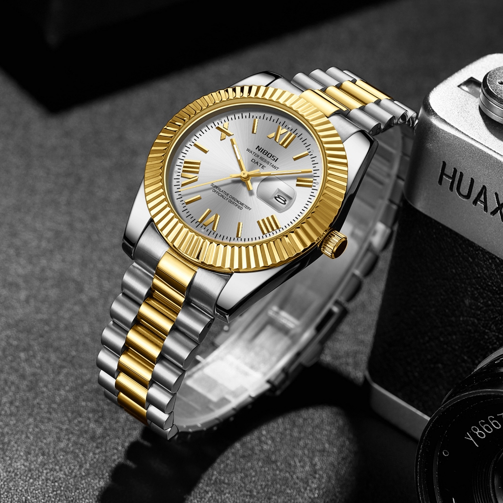 NIBOSI Relógio Masculino original Calendário casual À Prova D'água