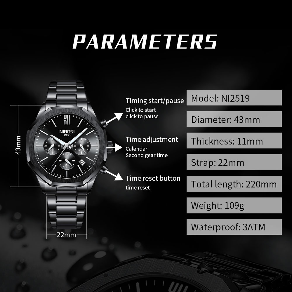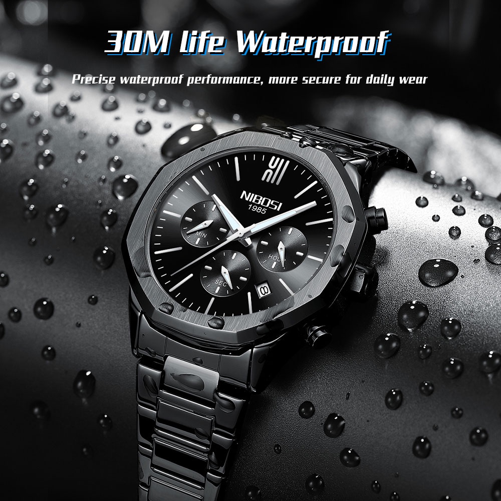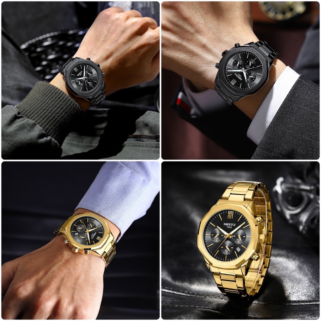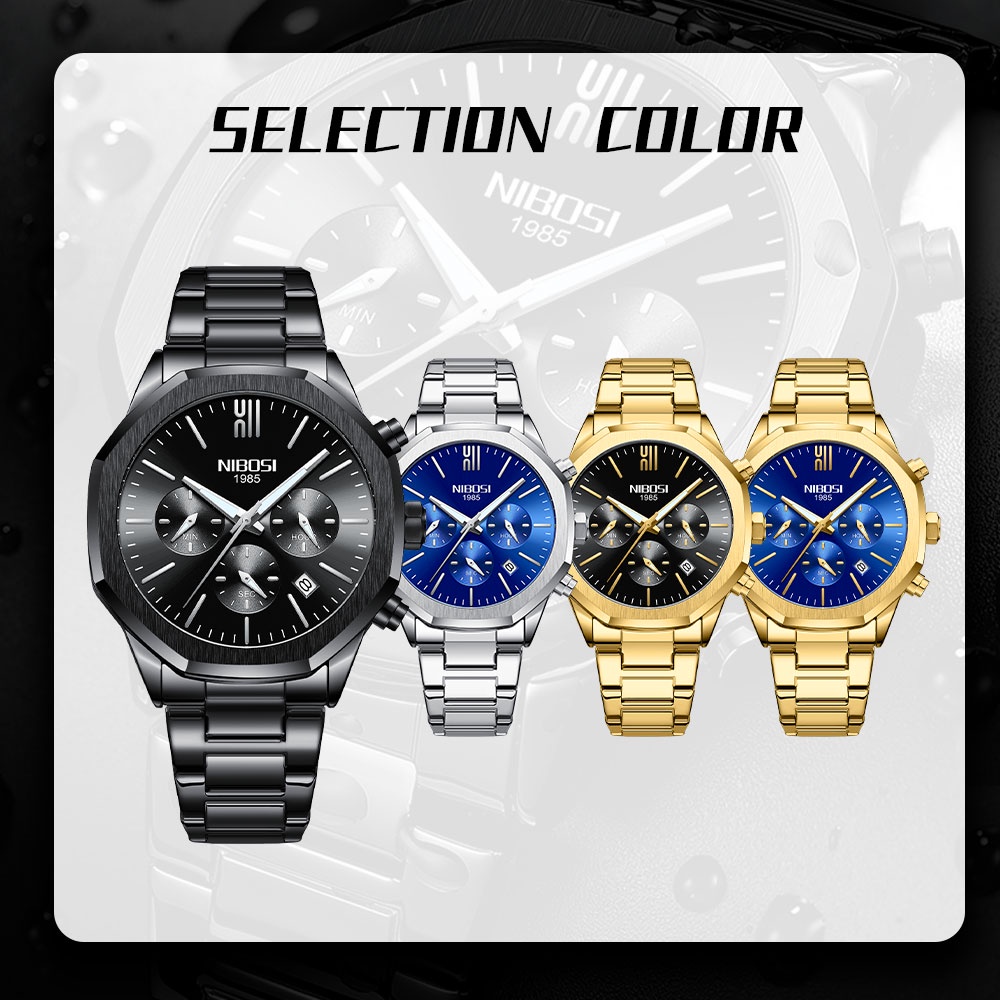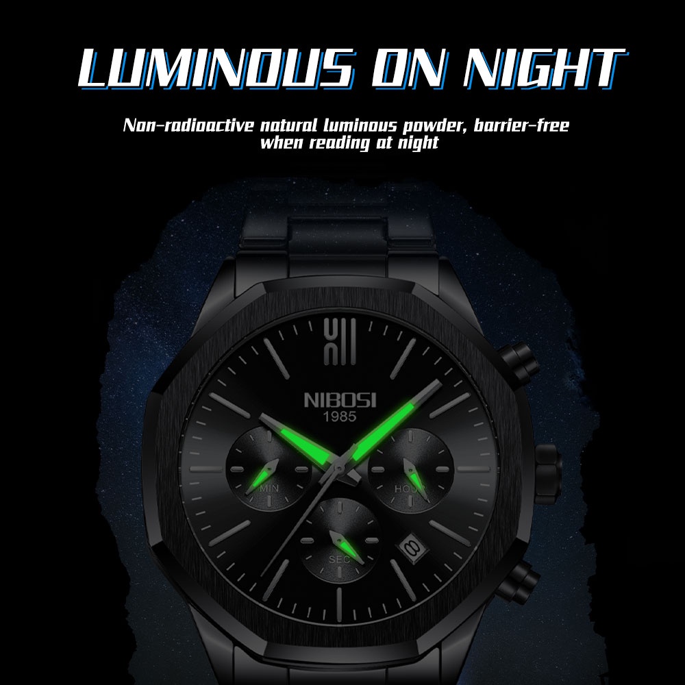 NIBOSI Relógios Para Homens Quartzo Aço Inoxidável Multifuncional Moda Esporte Relógio De Pulso Luminoso Com Calendário