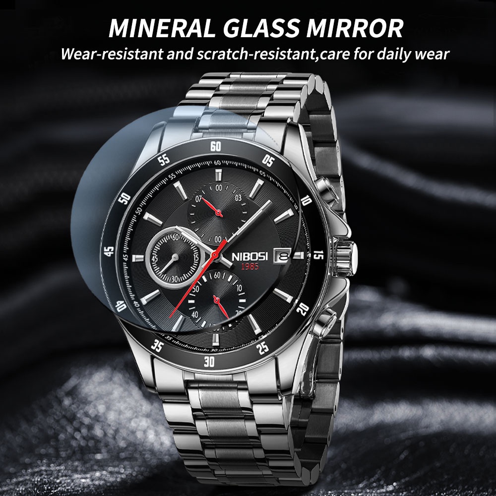 Relógio Masculino NIBOSI Quartzo Multifuncional À Prova D'água Moda Esportiva De Pulso Com Calendário Cronógrafo Fase Da