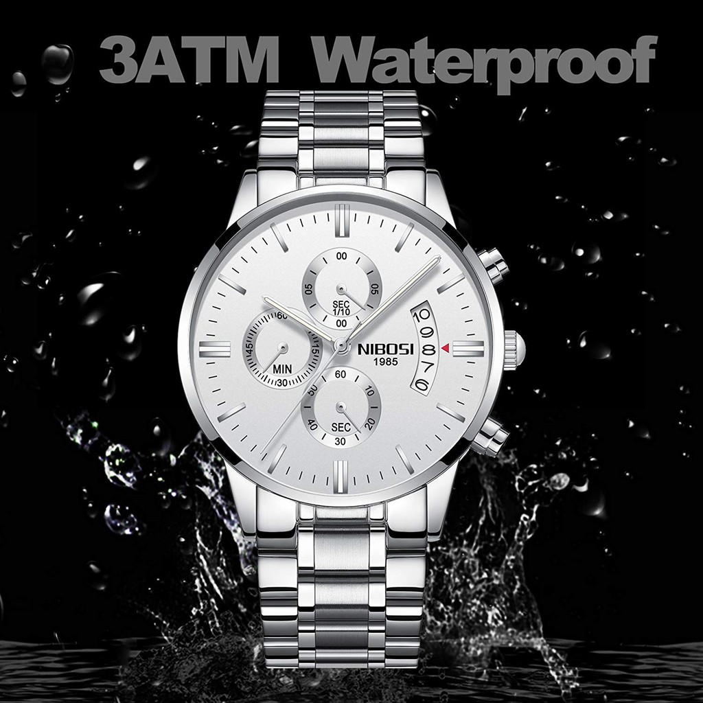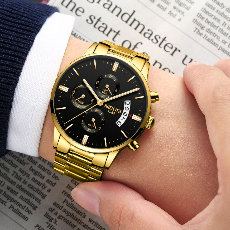 Relógio de Pulso NIBOSI / Relógio de Quartzo em Aço Inoxidável Luxuoso com Cronógrafo Militar/Executivo Masculino