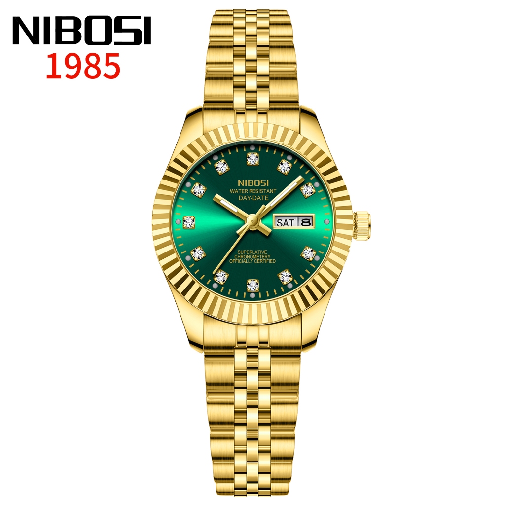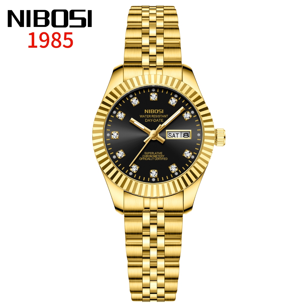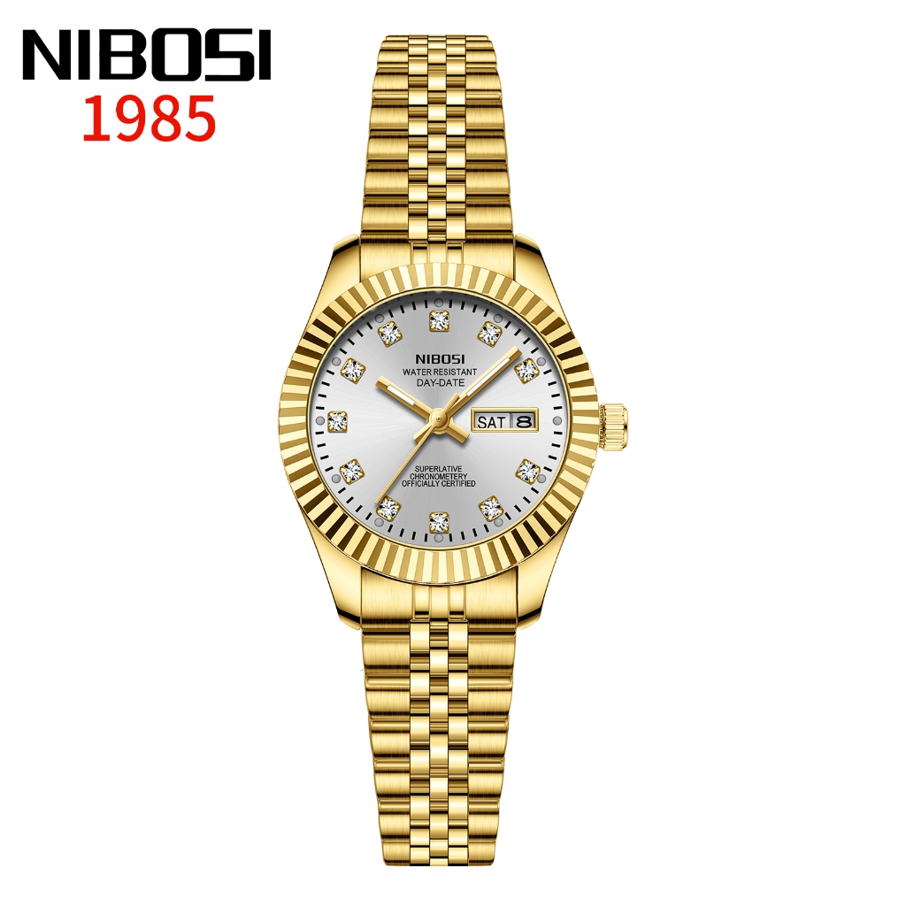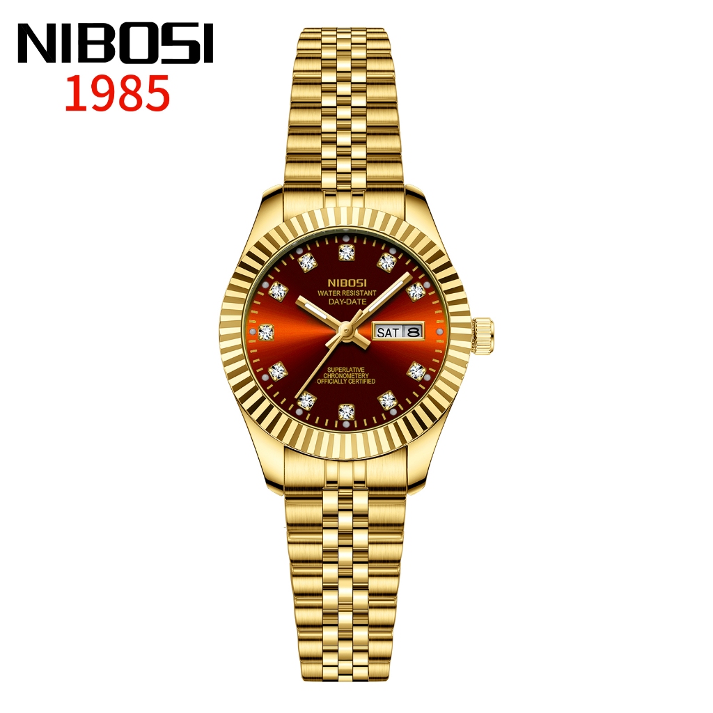 NIBOSI Relógio Feminino De Luxo Com Pulseira De Aço Inoxidável Dourada E Calendário De Quartzo À Prova D'água