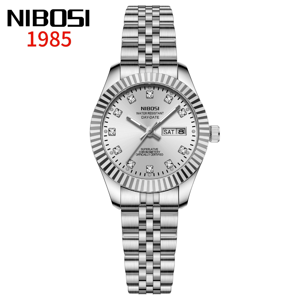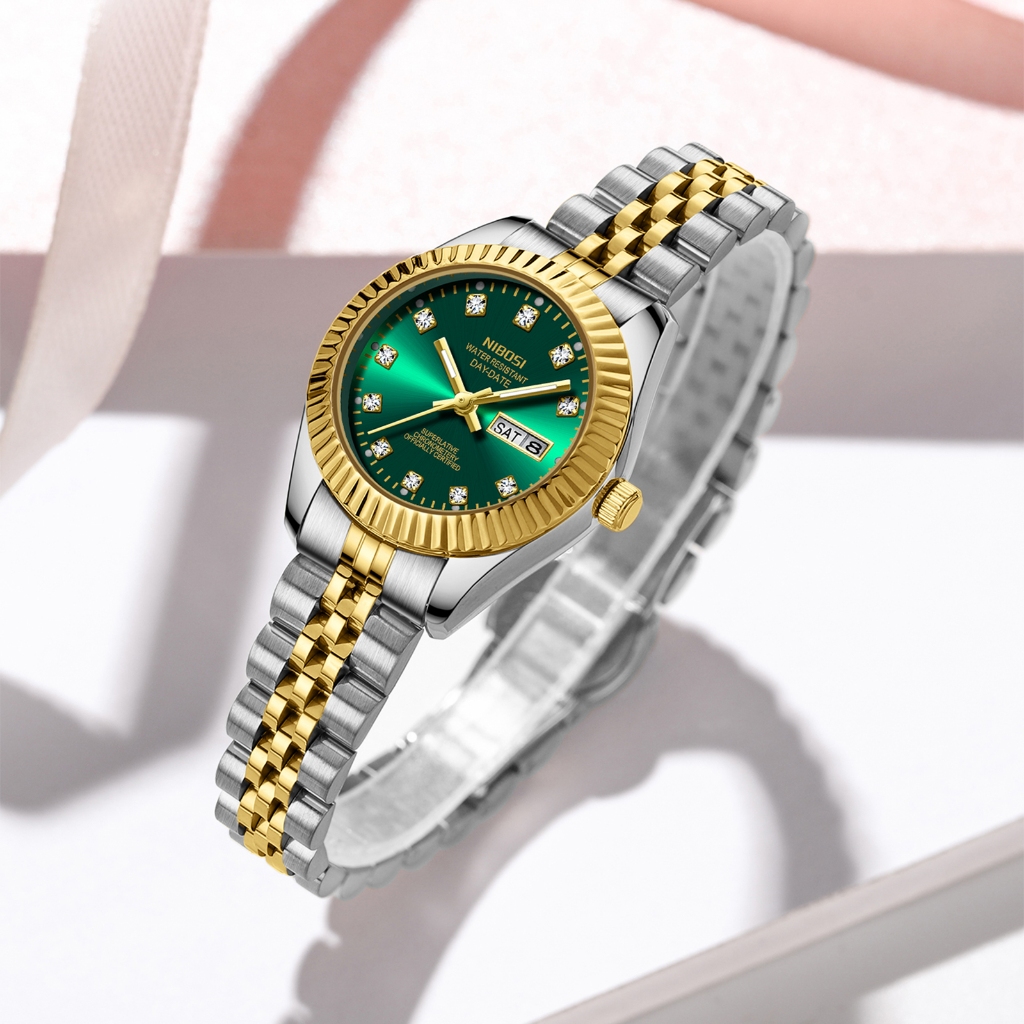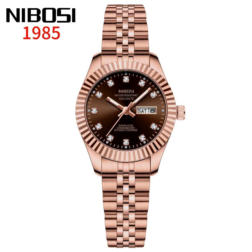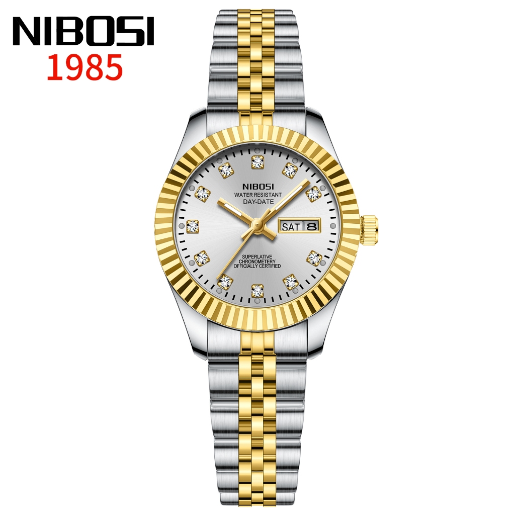 NIBOSI Relógio Feminino De Luxo Com Pulseira De Aço Inoxidável Dourada E Calendário De Quartzo À Prova D'água