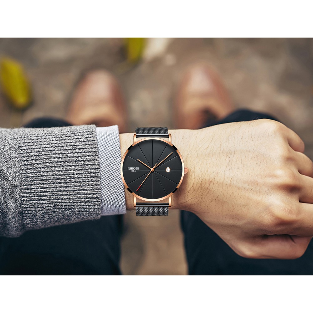 NIBOSI Relógio com Pulseira Malha de Aço Inoxidável 30M à Prova d'Água Masculino / Relógio Masculino Luxuoso / Estiloso