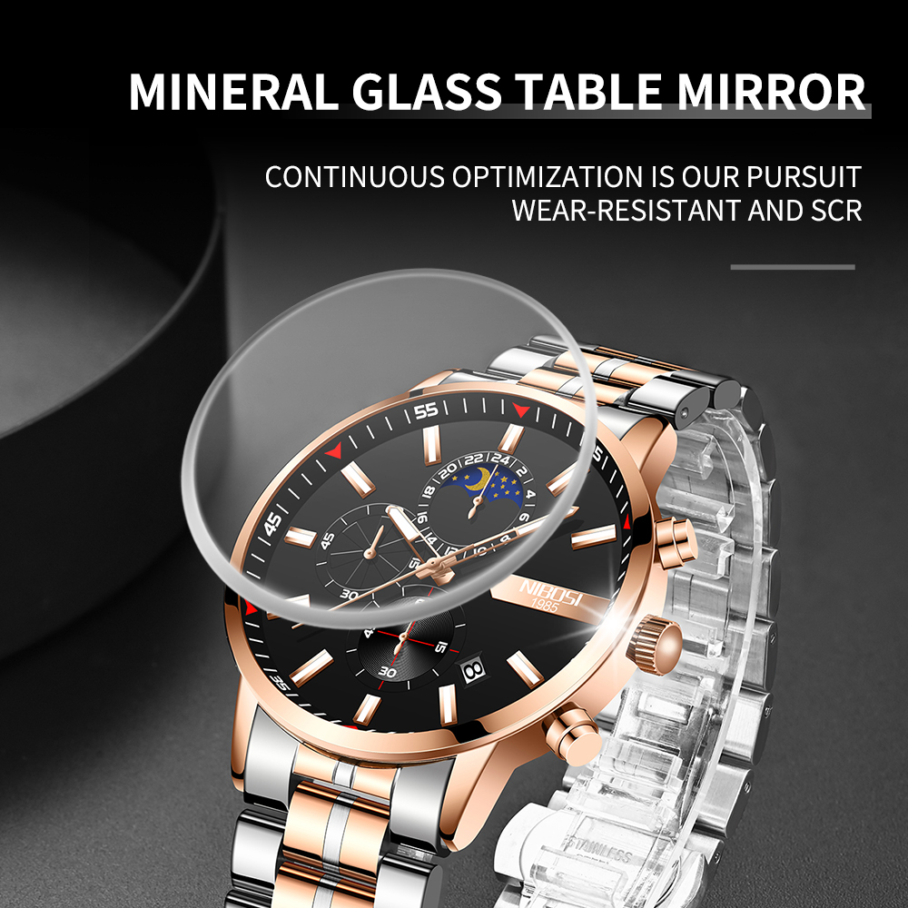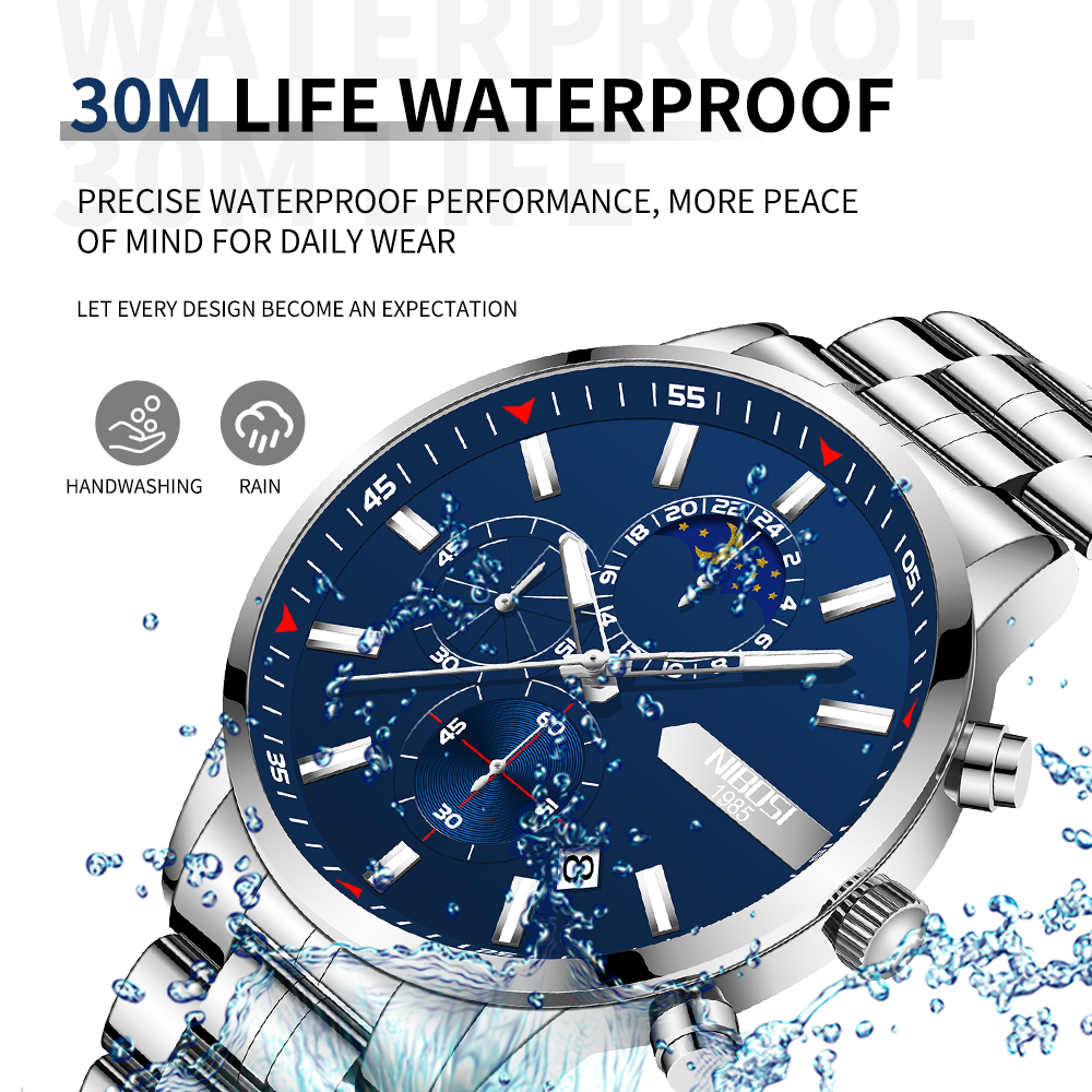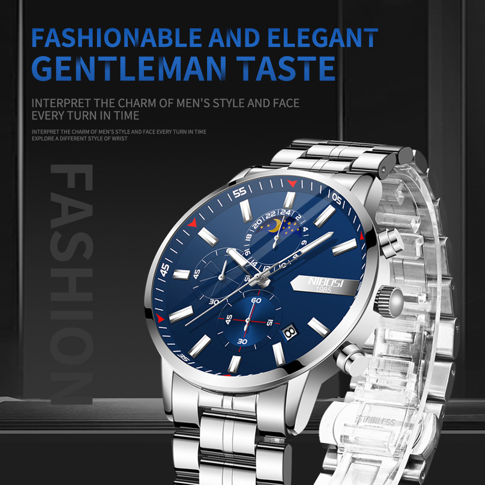 NIBOSI 2501 Relógio Masculino À Prova D'água Em Aço Inoxidável